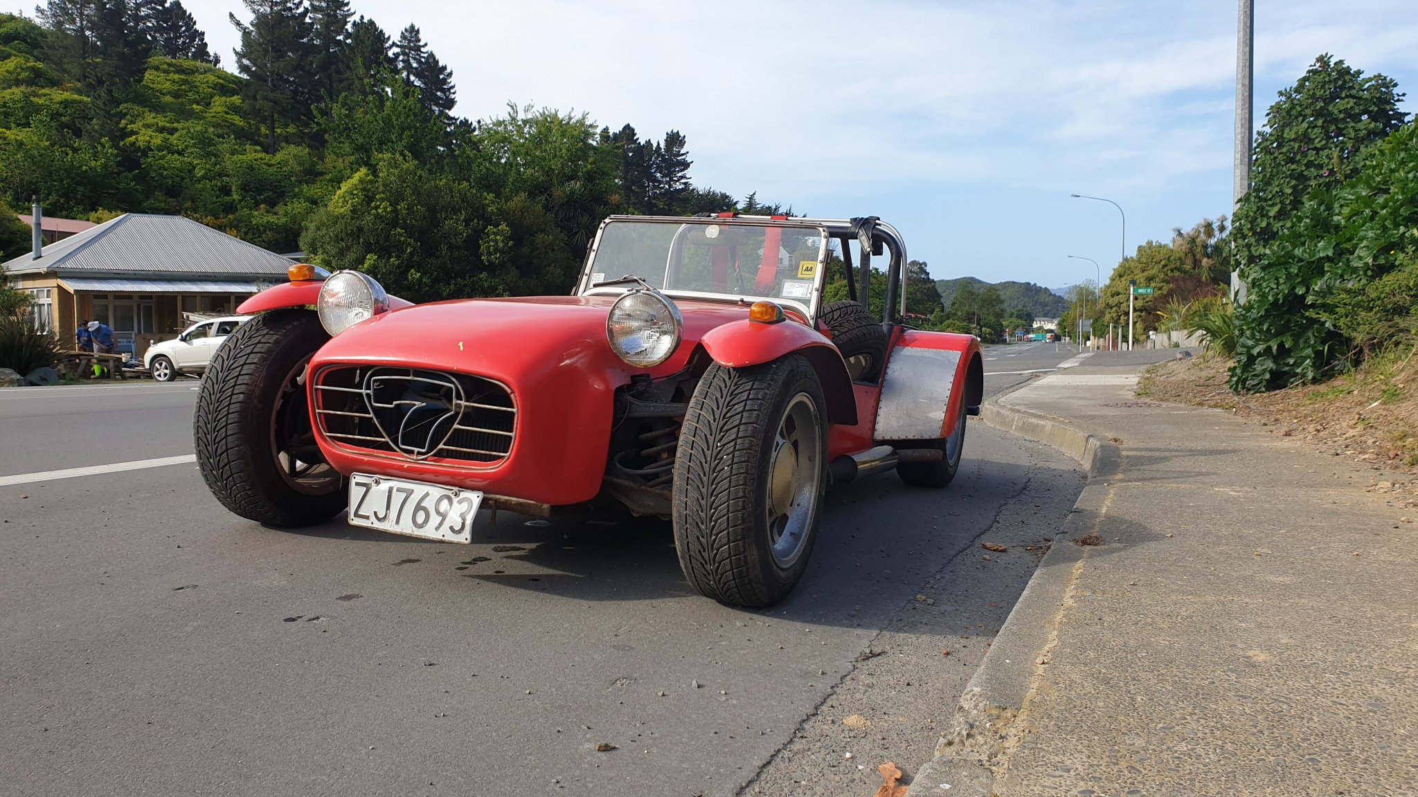Short version of the story goes, the guys who sold me the pallet of 18rg parts to help me repair the corona engine also had a Lotus Seven replica also running an 18rg on twin weber 40s. Has been in their barn for the last 14 years, but recently they dug it out. Some fresh fuel and a slight fiddle and it was running again. I heard through the grapevine that he was was looking at selling it, and it had my name ALL over it. So several phone calls and a bit of time passed and a deal was struck. So a car I've always liked but never thought I'd really be able to own was mine, even better it was RG powered. Traikered it to the ferry, drove on, drove off, allegedly a quick fang through Picton and onto another trailer back to chch. From what I can see, the webers will need a rebuild kit thrown at them, an oil leak from the sump plug, probably just a new copper washer, and the wiring for the lights repairing. Then wof time! Included in the deal was a roof, doors than can also zip in half, and a torneou cover which can also zip in half speedster style. I love it so much, even my wife admitted it was really cool, and she's usually indifferent to my cars.1 point