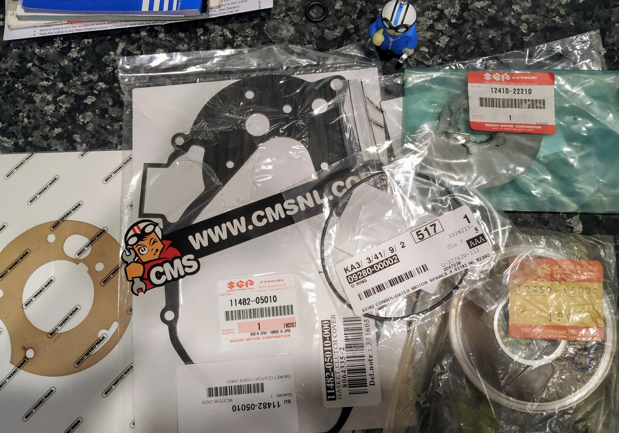 Probably have more from the build I can post, but not tonight. Have had issues with a nasty scraping clicking sound from the engine, at first I put it down to top end noise and tried to ignore it, but last time I had the cylinder off I got the Mrs to kick it over and the sound was still there, following my ear I'm 95% sure it's coming from inside the disc valve assembly. I'd noticed that at some point someone had munched up the heads of the 5 screws holding the inner valve plate in and the cross's were all jagged and rubbing on the plate, I replaced them when I put it together but the disc has a few decent gouges in it. I'm hoping the solution arrived today. Looking at the SGP stickers, there's NOS from the 70's, 90's and fresh new parts. Going to attempt cutting the disc for more nangs while I'm at it, have found a few timing specs to go off, so fingers crossed it works out!6 points