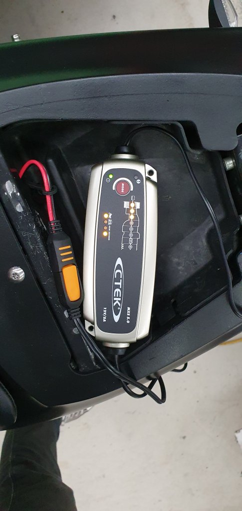 Finished charging the impala, now its working its magic on the buell. I've got it set on motorcycle and reconditioning mode. Ctek recommend doing reconditioning mode at least once a year, so seems like a good idea to start off this way. The leds show that the battery wasn't very charged, so its a good save.1 point