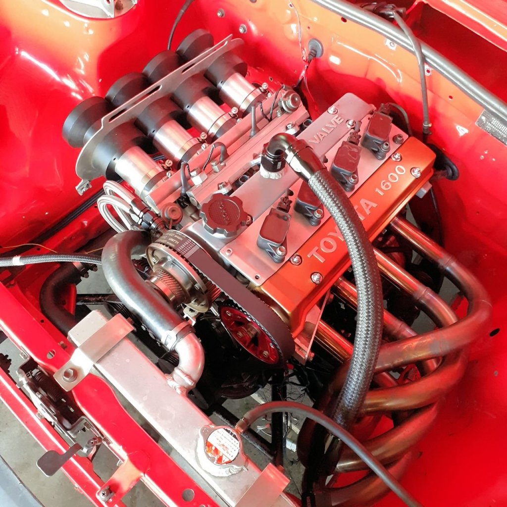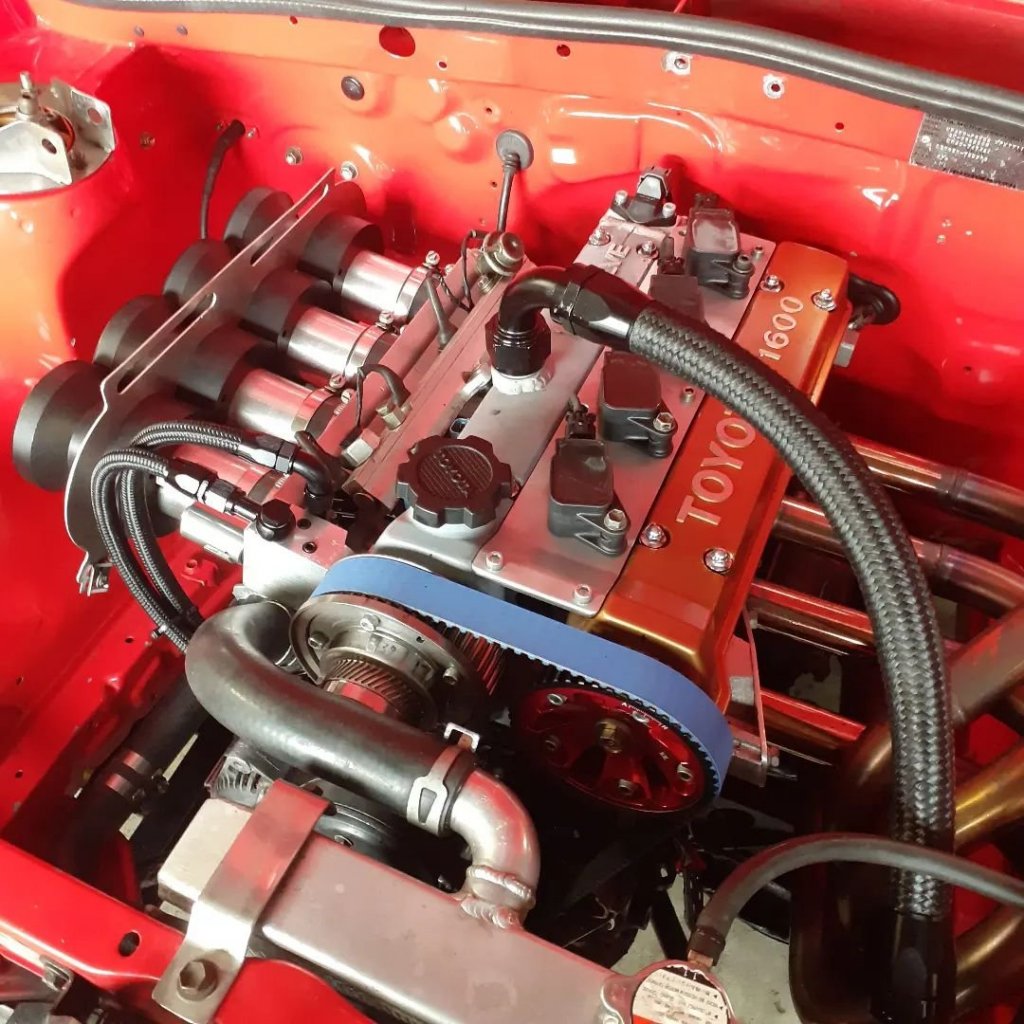 So, I'm onto version 2 of the vvti setup. main difference is the solenoid setup. the original setup I had the solenoid remote mounted. as was easier to do it that way and to confirm would all work. but ocd couldn't handle all the lines. more chances of leaks and stuff breaking. It had 4 lines. Pressure feed from engine, drain back to sump and 2 for advance/retard New setup eliminates the advance/retard lines. So just the 1 pressure line (feed from engine) and drain line to sump. yeah im still using the dipstick tube for the drain, ha. Solenoid now mounts in the block right by pulley and bolts to the other part. so all the advance retard ports and wizardry happens inside the ali blocks. Doesn't look too out of place. have done a small amount of run time with it. All looking good so far. Also moved the cam sensor. before it was hidden in the spark plug valley. but getting the clearance right was a pain, since the covers can move around side to side on the studs Now its on the top at back of cover. I had a little accident with the bran new genuine timing belt, so had to get this blue thing to get me going again.24 points