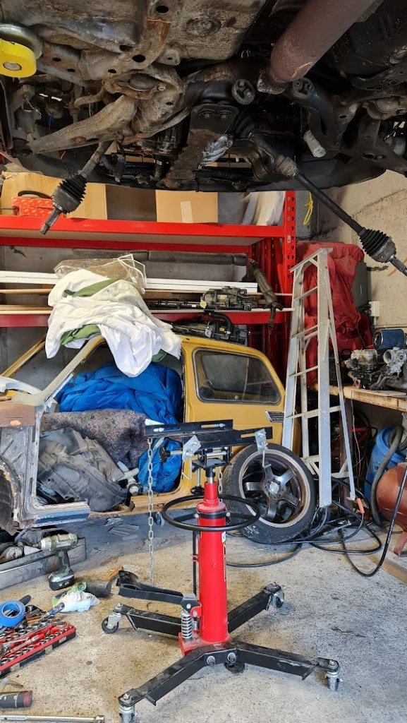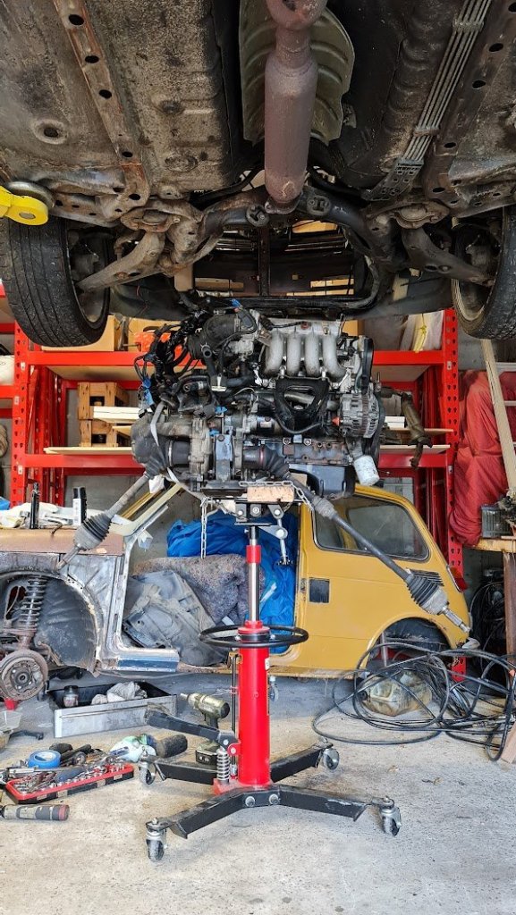 Tool some brave pills today and got out the extension and the holesaw Took a couple of cuts to find where the top was. Hind site says dropping the subframe would have made that easier but the cbfs were strong The shifter lines up nicely with the console which is nice, I might need to cut/weld/adjust the shifter so its not so far back but I'll wait until its bolted in and the steering wheel/column back in Cv boots arrived for the rear, Fitted them and the crv diff when I was under there CRV diff (right hand side)looks slightly different but bolts in the same1 point