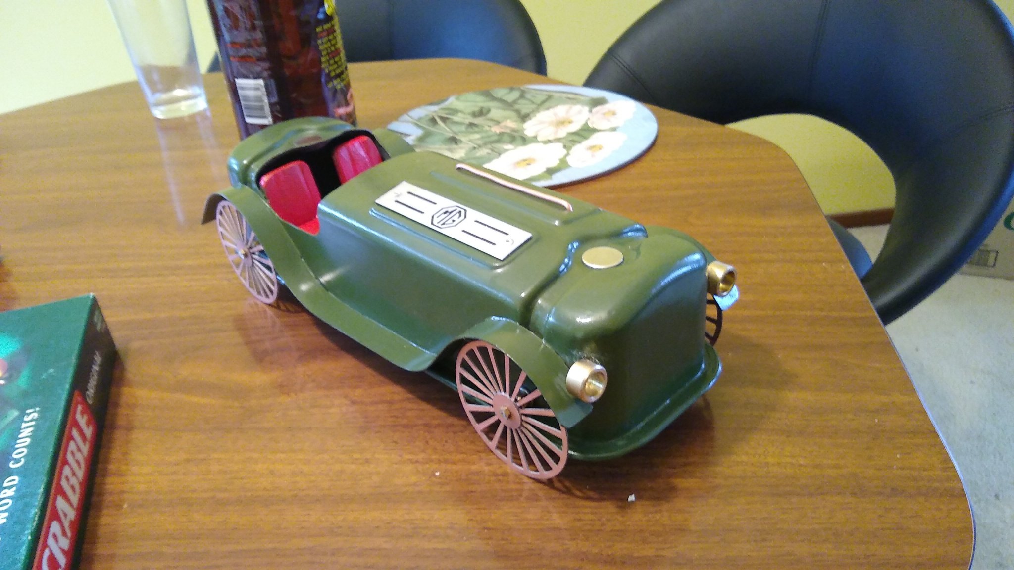 Been making this valve cover racer for the annual MG club competition. I don't actually have an MG, nor am I a member of the club... Still have a few mechanical and style bits to do on it, but it rolls now. The MG plate on it is machined from some magnesium alloy that I cast and extruded a while back. Other bits from that same batch ended up holding pig skulls together for medical experiments.10 points