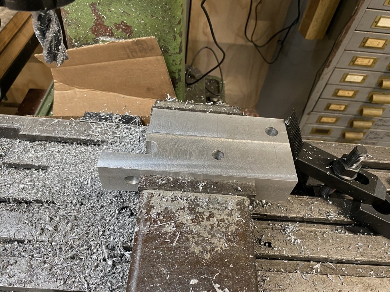 Working out how to machine the steering arm with some aluminium I had. Much easier to machine than a big block of steel, that I don't have. I used the bandsaw to cut out that corner, much faster than turning it all to swarf. I had plans to machine the balljoint taper(the hole on the left) using the lathe. As it is now, I should be able to fit it in the big 4 jaw to center the hole. But I just tried a practice taper in some scrap and it seems real close, but the finish is not as smooth as the oem hole which I don't think is good enough. I'd buy a taper reamer, but OMFG they are expensive. Also, as far as I can accurately measure, the taper is 4 degrees(per side) and I cannot find anything that size. I think for the steel version, I'll get it profile cut as a rectangle, so I have my reference surfaces, but also cut out most of the material I need to remove. So I don't have to spend hours at the bandsaw cutting the outline, I would just need to cut some tabs.2 points