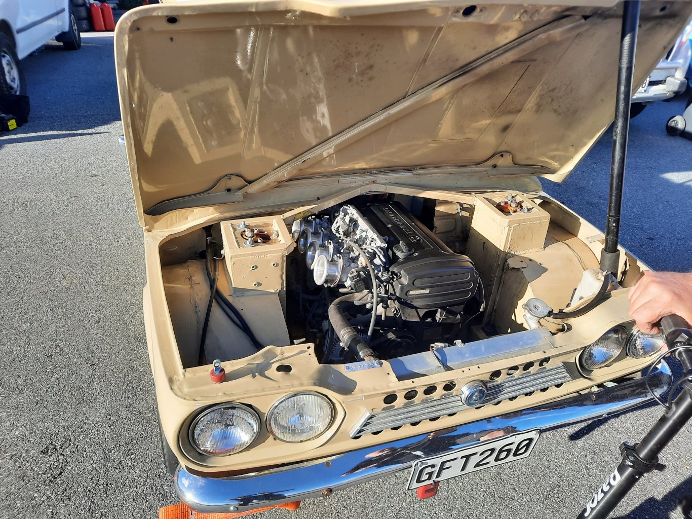 Well, here we are, It's time to try this WOF thing again. After the string alignment, when the rain finally stopped, I took the Marina out for a quick run around the block to see how the alignment was. The steering was dead center, and it was a lot less wayward than it had been, likely due to the new bush in the steering rack. I'll call that a success. All that was left was to wait a couple of weeks for the next booking. This time I booked it with a different workshop, one that I was recommended by a friend in the local Rover club which he had good experience with, and I booked it as a Pre-WOF inspection off the bat (just in case I did need more than the 28 days to fix anything). I wanted to make a good impression, so the day before, I gave the Marina its first real wash, with suds and all. It was dirtier than it looked but it's hard to tell because of the condition of the paint. The wheels gained a bit of a shine though. The Marina did decide to play a great little prank on me though, the day before the WOF check, where it ran on only three cylinders. haha so funny. I checked spark, all good. It didn't clean up when revved, and barely idled. I was starting to get a bit concerned, and then decided to check the carb and noticed the choke jet was out despite the handle being all the way in; the jet had stuck and the carb was over fuelling. I lightly touched it and it snapped back into place and suddenly the engine smoothed out and ran beautifully, as expected. Phew. It stuck again the next morning, so I'll need to sort that out. Yesterday morning, with my wife in the Leaf in tow (two polar opposites of transportation), I drove the Marina the furthest it's been in my ownership and dropped it off at the workshop. Other than once again passing a police officer on the way there, and my wife alerting me to an iffy connection on one of my brake lights (which a quick jiggle of the bulb holder cured), the drive went well. Straight off the bat I got way better vibes from these guys about the Marina, having had a quick chat with the guy there who expressed his interest and enthusiasm towards the car. It makes a big difference when the people you choose to work on your special project actually care about it. There was no waiting around for it this time, and since they were busy I wasn't going to get the car back until the afternoon, so I jumped in the Leaf and after some breakfast and errands, I spent the rest of the day trying to distract myself whilst anxiously waiting for the call. Late in the afternoon the call comes through "your car is all done and ready for collection". Vague. We jump in the Leaf again and shoot down there. As we roll into the carpark, the Marina is just parked out front, looking awesome. As we turn to park next to it I notice something and just about jump out of my skin. There is a sticker on the windscreen. I go in and sure enough, we've done it. After almost 29 years to the day, the Marina has a fresh new WOF on it. All the hard work finally paid off. Soon to be updated The guy from earlier came over and complimented the car, saying how good it was and how good it looked underneath, and wishing me some good cruising over summer. He also clarified a note on the WOF sheet for me, that the bushes on the rear axle reaction arm are perished and will need to be replaced, but that needs to be done before the next WOF. Other than that, we were all good to go. Some strategic tape to cover the gap in the seal, since it was meant to rain. New seal to be fitted. I jumped in, the old girl fired up first turn of the key and off we went. As it's not insured yet, it went straight back into the garage for now. We quickly popped to VTNZ before they closed and renewed the rego, which has been on hold for as long as it has not had a WOF. I was 7 years old when this car was last on the road. It hasn't been on the road for longer than some of my colleagues have been alive. But here it is, back on the road again and ready to do some summer cruising. It's been saved from an uncertain fate where it could've been stripped for parts, chopped up or scrapped. A lot of people wouldn't have bothered to do the work it needed, but back in 2021 when I bought the car, I promised the seller I would get his dads old car back on the road. For a couple of years now I've been holding on to a little treat for the car (and myself), only allowing it to be fitted once the car is road-legal. That time has come. Off came the stock wheel, which is badly cracking and doesn't feel great to hold The boss kit needed a couple of pins for the indicator cancelling fitted, and then it was fitted to the column And my steering wheel of choice was fitted. It's been so long that I can't recall the size now, it's a nice black leather Mountney wheel. Compared to the original wheel it is slightly smaller, but so much thicker And it feels great in the hand It won't be to everyone's tastes, and I couldn't care less. I like it. I wouldn't be a British car owner without some self-deprecating humour too A huge thank you goes out to everyone who has followed along, all the comments and support, and to the people that have helped out with knowledge/advice and parts when needed. There is still plenty to do to it, and it'll have some money spent on upgrades soon, now that it's proven it can get through a WOF. For now though, once the insurance is sorted, I just want to get some Ks on it, give it a shakedown and see what happens.1 point