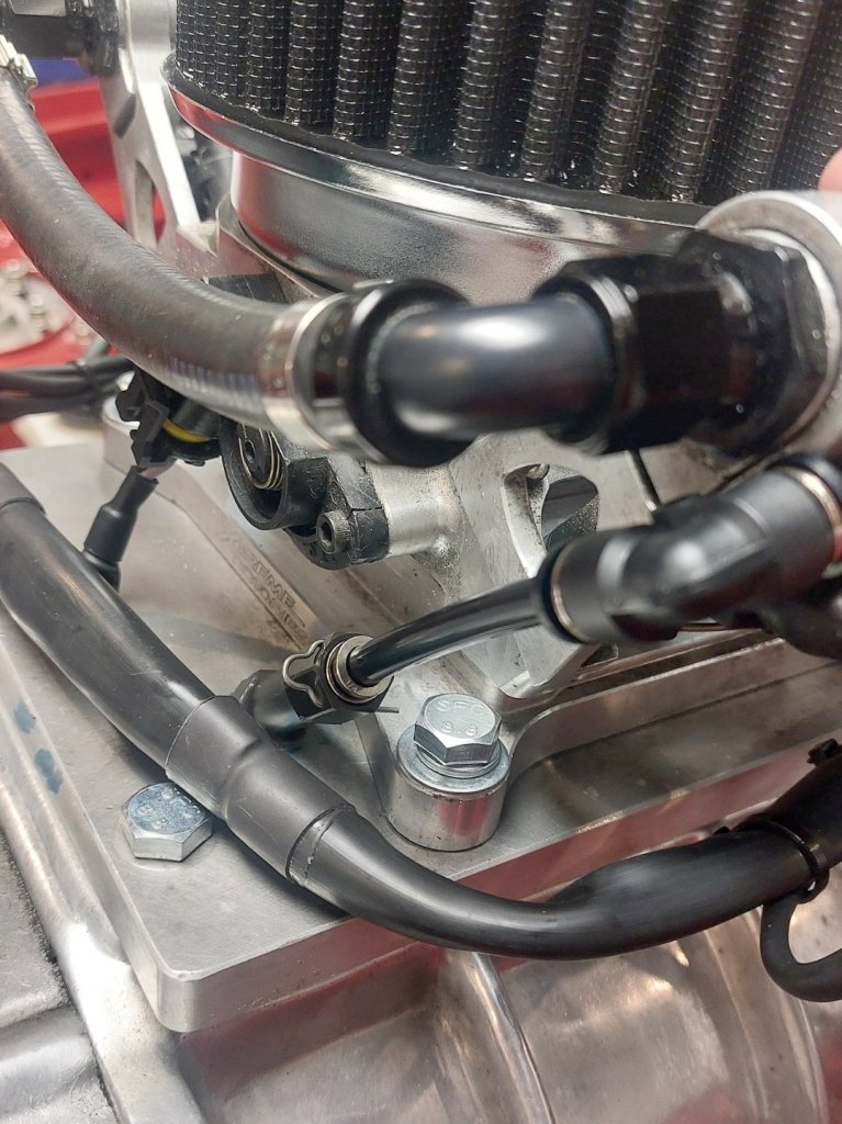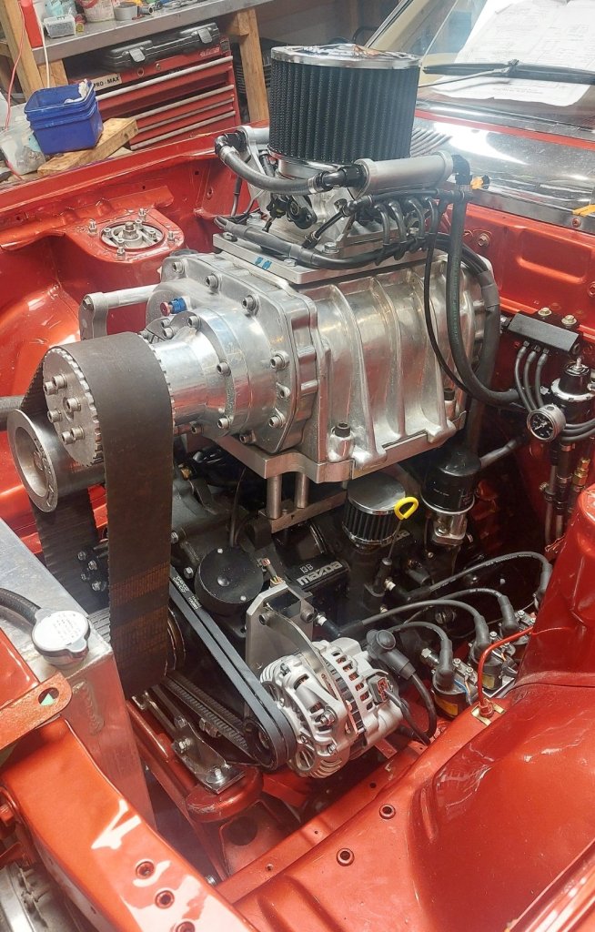Engine bay 95% done, just need to sort throttle cable, tidy/clamp wiring, fluids and radiator overflow. Decided to run 2x water meth injectors either side of the throttle body, this is to spread the mix right across the vanes to aide in cooling, and also help ensure that both rotors get a dose to help stabilise ignition. One if the injectors is faulty, so also waiting on a warranty replacement for that. Air Filter sorted, although won't pass cert due to height, but I'll sus something come cert day to deal with that.1 point