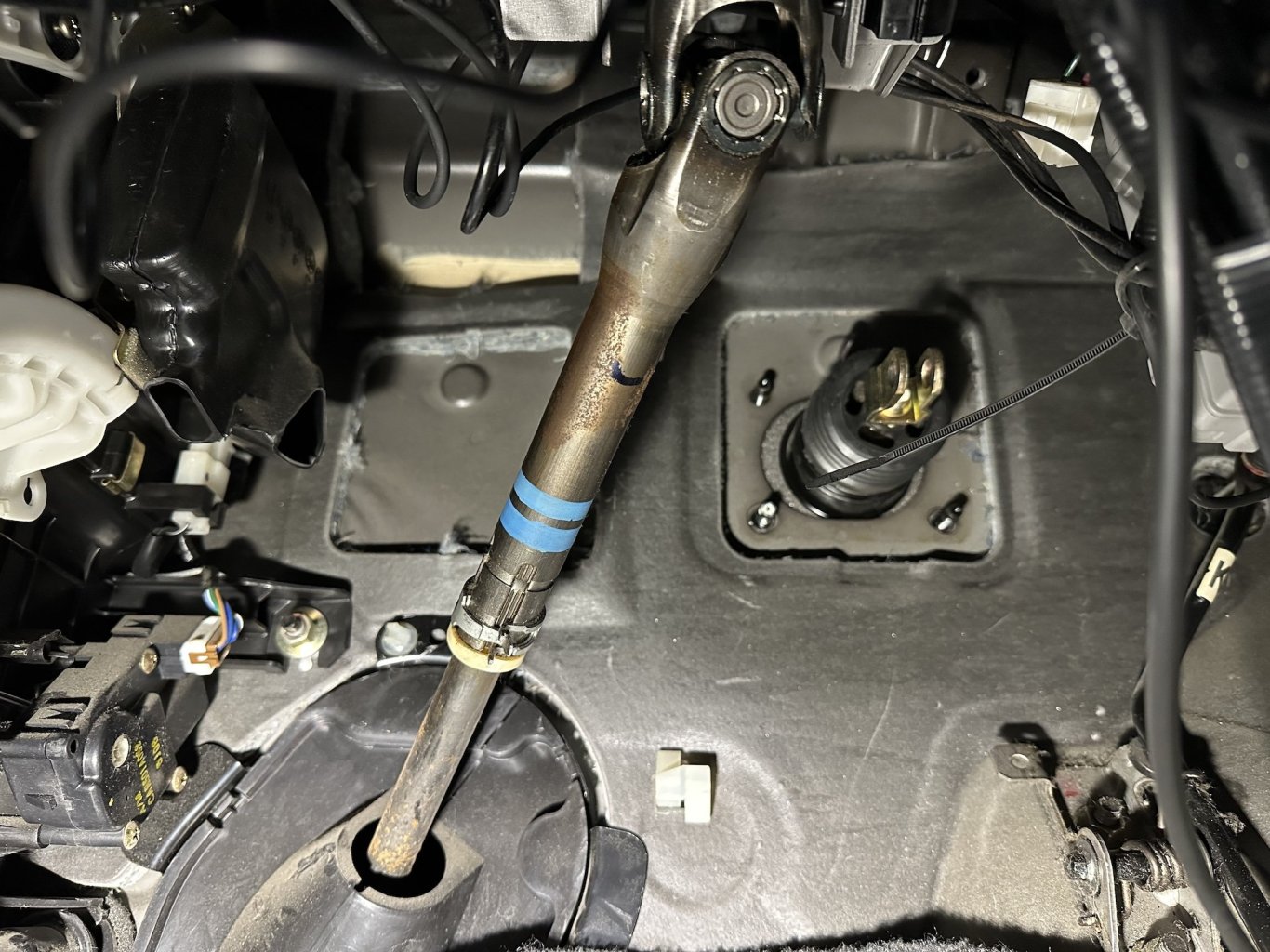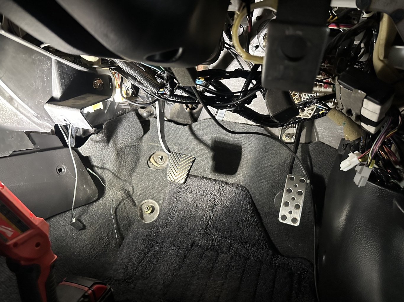 Look ma no pedals! Unlike the Diamante this one doesn't have a template pre-cut into one layer of the firewall so I have to be extra careful where I drill through. You can also see it's missing the reinforcement bracket up top for the clutch pedal like the brake pedal has. I'm still hunting around for this bracket, and I may just wait to drill through the firewall until I get this bracket in and fitted.1 point