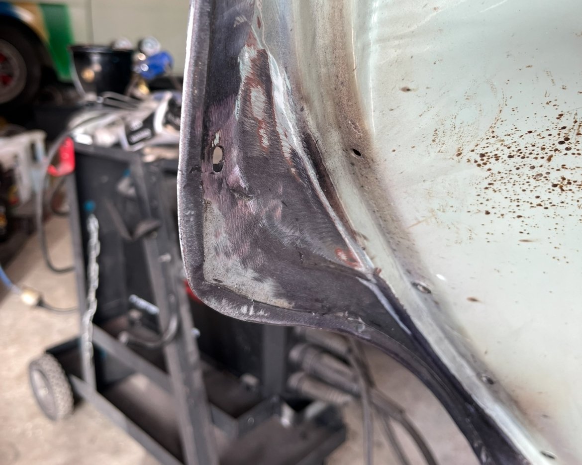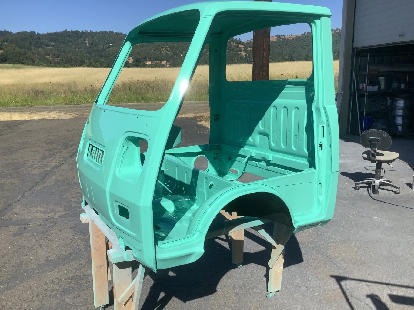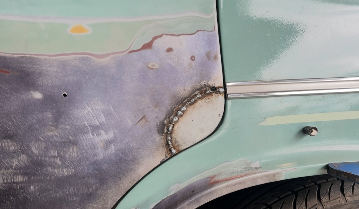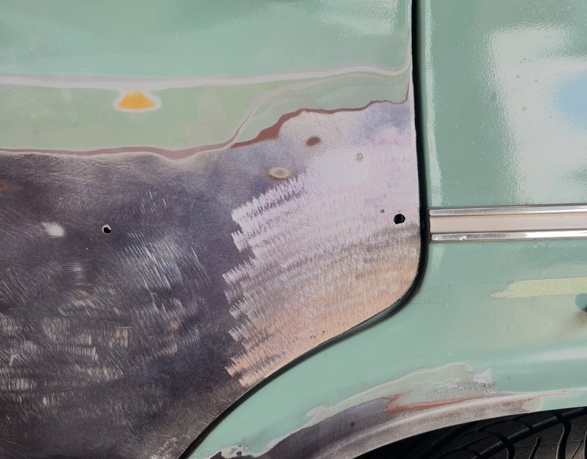 ropped the car off to the painter early June and hes been ripping into it since then. Got the outside all primered and blocked ready for paint. Hes spent some hours on the block but its come up straight as! Once we got it prepped we got it up on the rotiserrie to prep and paint the underneath. Undersealed, coloured and cleared as well as up in the inner guards. And then it was time to paint the inside and exterior so back on the jig1 point