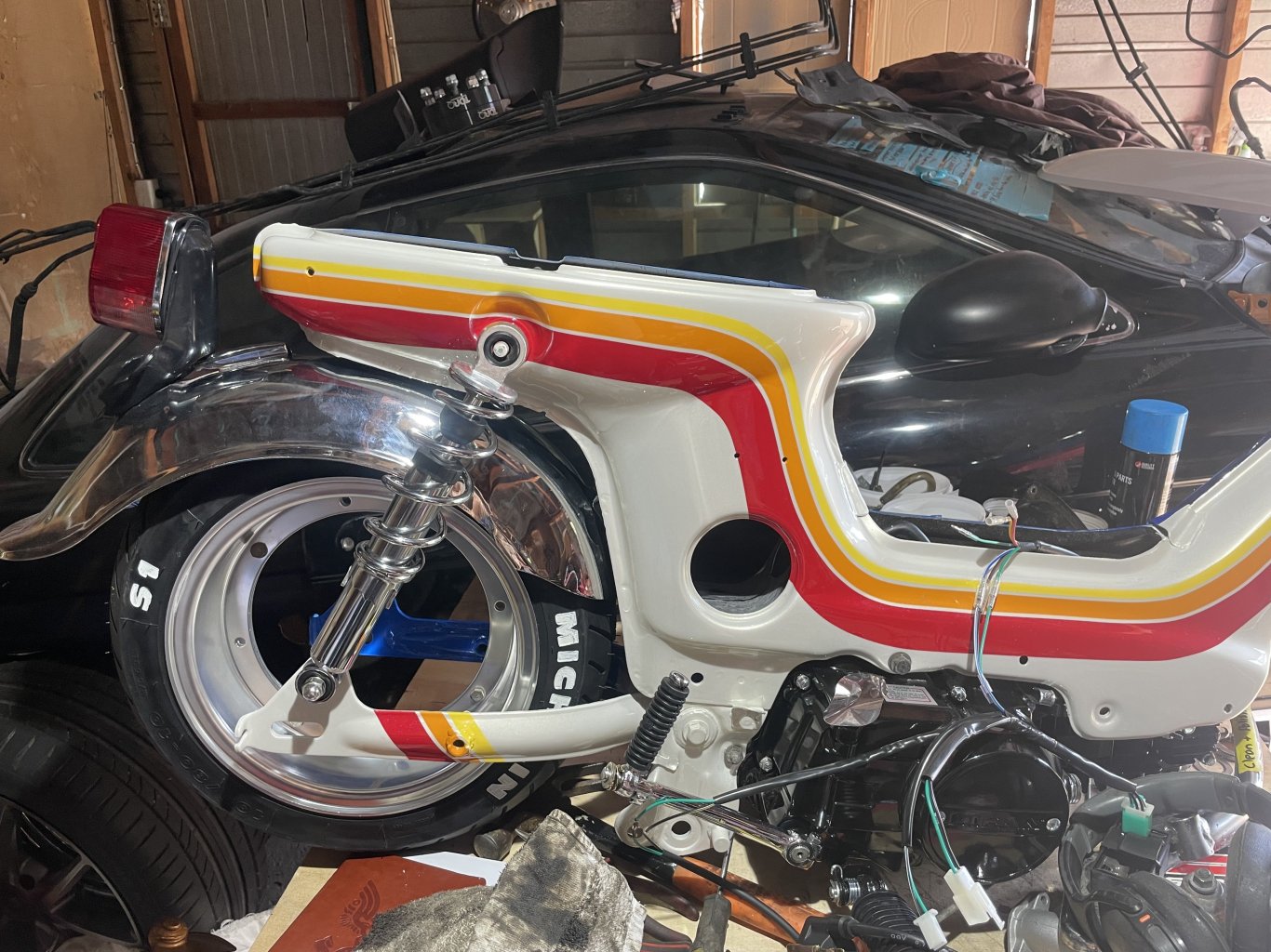 All finished and ready for the Motorbike Show next weekend. It's not perfect, but it looks very presentable. I ended up painting the front mudguard, bellypan and the bottom of the LH fairing panel and the colour match is pretty good. I'm happy now the wiring is tidy, secure and safe, the grey panels look great, I've fitted stainless-steel bolts and screws wherever possible. It's now a lot more reliable and fires at the first prod of the starter. Although I'm happy with it I'm not in love with it, so it will be for sale to make way for????? Stay tuned!2 points