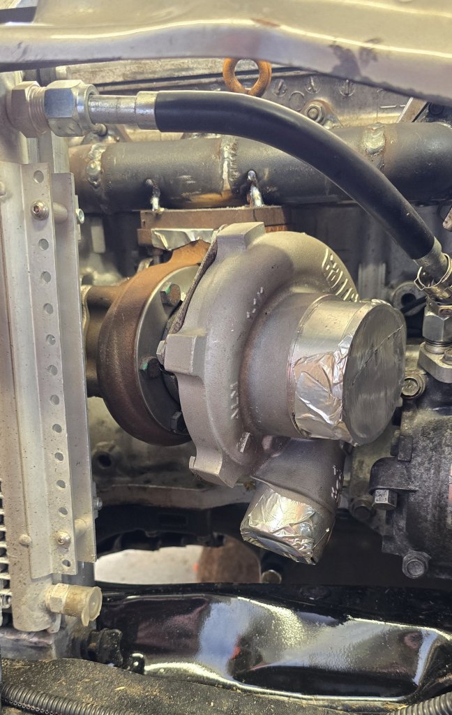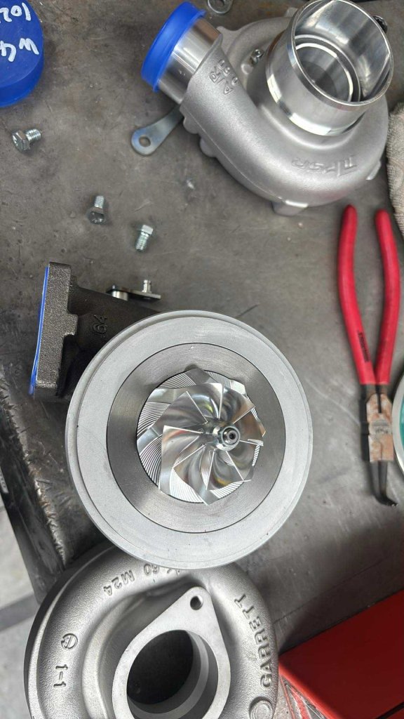 The Gtir is still very buried in the garage. but found a few hours to myself the other day and decided to mince about on this a little. A while back I brought a pulsar gtx2860R for it. I very nearly got more carried away and brought a 2867 but decided to be a bit more sensible for once and got the 60 taking the gamble on that due to the compressor wheels being the same size I might be able to swap compressor covers took next to no photos but turns out it was as simple as swapping the comp cover backing plate over she all bolted up. so now I have a ball bearing factory looking turbo that has 1mm bigger turbine wheel and modern aero. my car for whatever reason had the waterlines removed from the turbo so I’ll have to make water lines and probably a new oil line unless I can fit a restrictor to the factory oil line some how but overall great success7 points