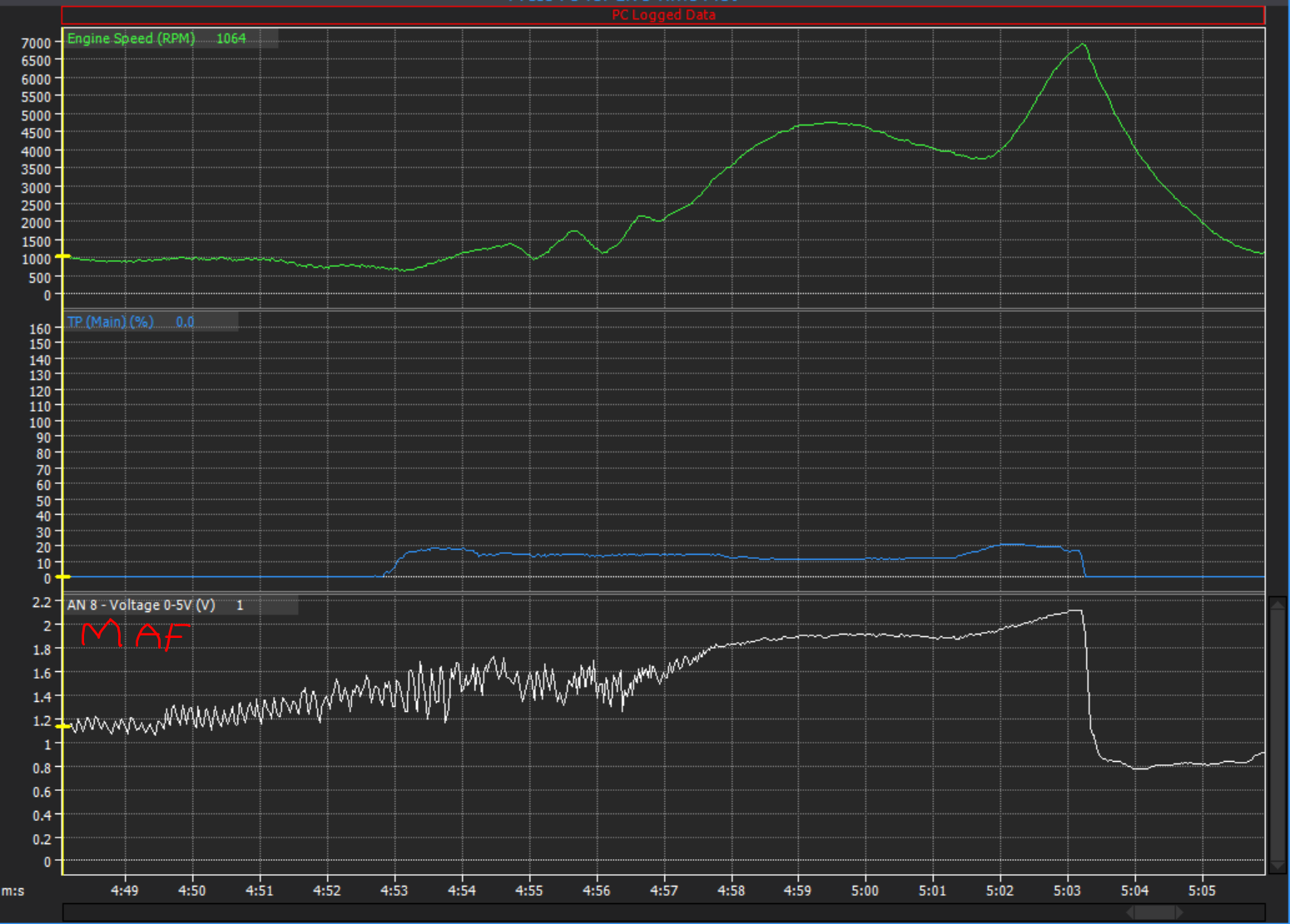 Welcome to Daves Instrumentation Adventures So I thought I'd better test the idea on a single runner before after I've already purchased 5 more MAFs the black stuff is using a 3d print pen to join the 2 parts. My only red roll of filament was still on the printer printing the other runners... Restrictive? Probably not. Results are decent, and it is insanely sensitive. The wobbly bits shown here are reversion from having god awful cam timing. Which smooths out once rpm gets up a bit. But it's looking promising as a good method for balancing throttles and the bank to bank VVT stuff. (Apart from that my bonnet wont close now) The horrible reversion stuff mostly happens just off idle, when rpm is 1000+ and it's steady idle it gets a nice smooth signal. So should be okay to use it to balance the throttles.13 points