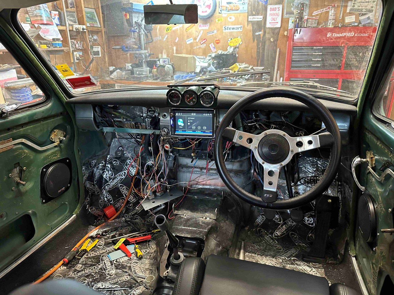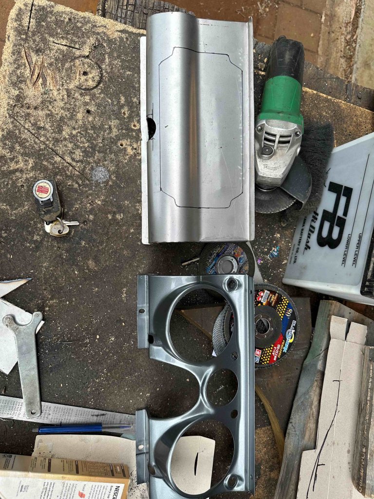 I bought the speakers as Jaycar had the 5" front on sale for less than half price. The 6.5" were at normal price but I grabbed them as well. Today I fitted the front, so now I have sound. Tomorrow the rears. I have also made up a new dash panel. It still needs work and is not a perfect profile match to the rest of the dash but close enough that I will be able to fudge a blend between them. I don't have anything other than a vise, a couple of bits of angle iron and hammers so it's turned out quite well for using the cave man technique. The reason for the new dash panel is I have gone digital with the Haltech i7c. I did want to keep with Smiths gauges but to be honest I got SFA information out of Robinsons, so I decided to go plug and play. The Haltech display has 4 different displays, or you can create your own if you want. Since the audio unit is digital It will all fit in ok.1 point