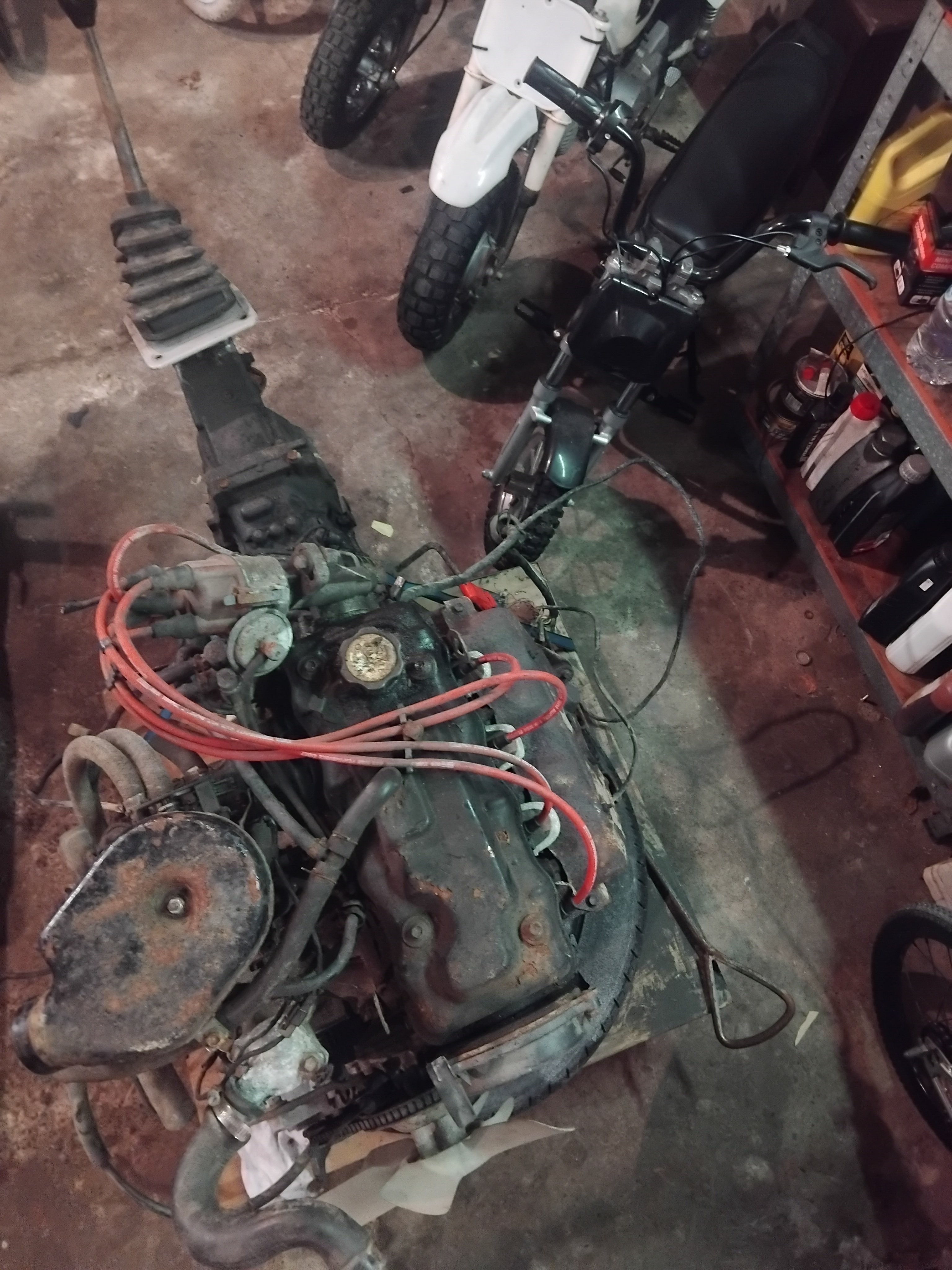 Just brought this motor set up i test drove the parts car monday started run well was alil loud no exhaust ect but was a fair price 1300cc suzuki 4 cylinder 5speed Jimmy motor Came with everything to run carb loom starters ect spear coil and starters Means don't need to modify frame or hopefully keep all steering breaks atlest to test drive engine bay verry small And cars light so should move along fine clutch felt good on test1 point