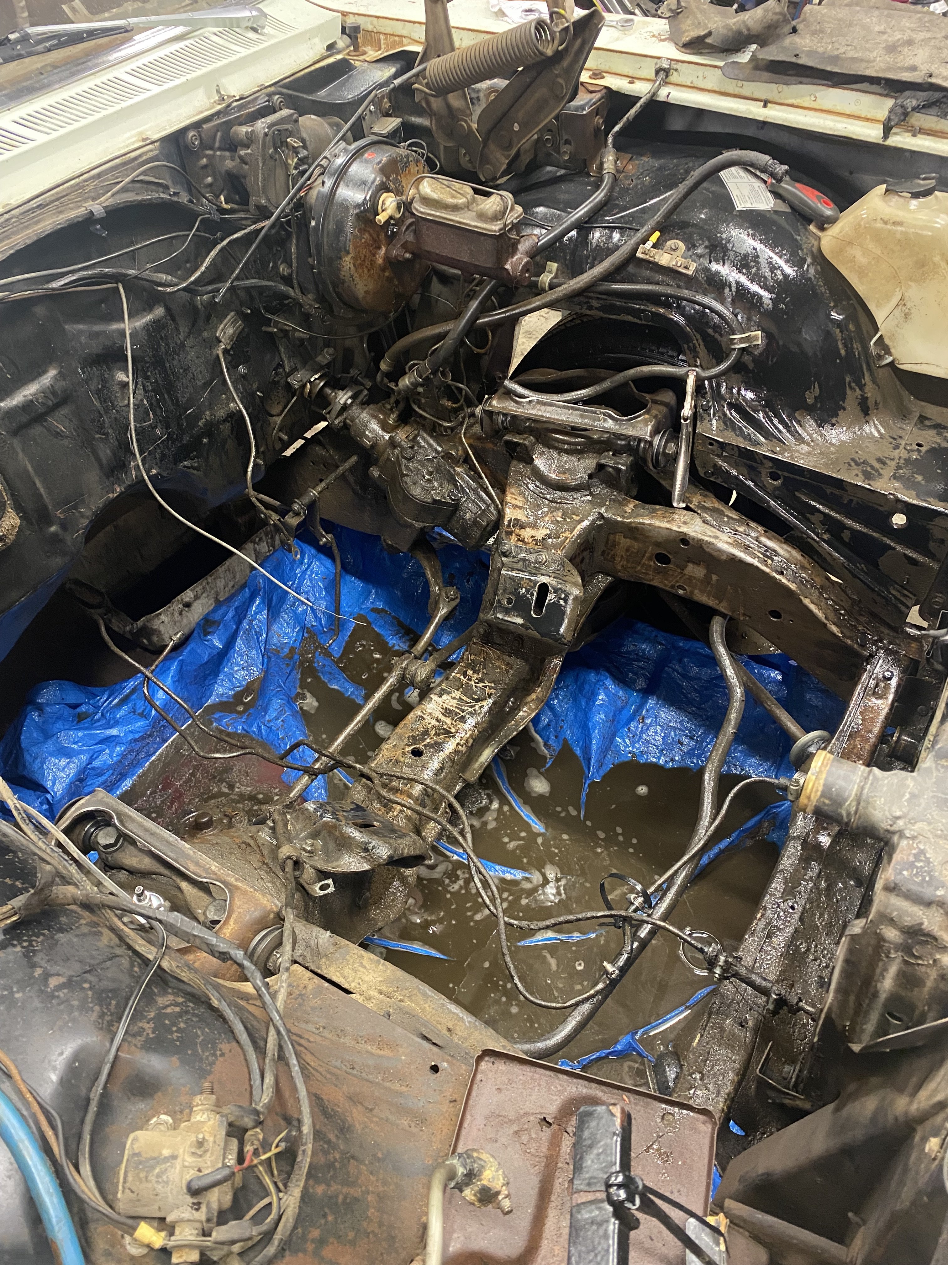 I’ve just spent an hour on the scraper, degreaser and scrubbing brush and have removed a silly amount of shit. unfortunately the paint seems to be missing from the chassis once the dirt comes off… so I’m going to get in here this weekend with a steam cleaner and get it clean enough to bomb some paint at. Any recommendations for what to paint the engine bay with that’s quick and easy and black and isn’t going to mind a complete lack of prep?2 points
