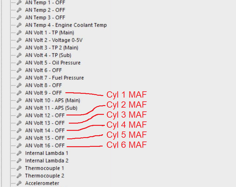 I got it all running again with some plastic printed bits to hold the fuel rails in. Obviously not a good solution for when the engine fully heats up. But lets me make some progress until the other bits turn up. I wont drive the car but I can at least start the motor up etc. With this new intake, a lot of the wiring is now much more hidden which is nice. So it feels like a worthwhile idea to try and get the visible wiring on top of each bank running a bit nicer. So I'll do that at some point. It idles nice and low, can get it down to 700-800rpm at the moment, and throttles arent adjust yet. Speaking of adjusting throttles... Previously I made a small tube with a MAF fitted in it, to balance them up. Seemed to work fairly well. Now that I have a Thunder ECU to use, I have an absolutely enormous amount of IO at my disposal. What to do, what to do... Since the Toyota style MAF used in the vitz etc is now quite an old part, they're at end of stock prices... $20 each on aliexpress. I've already got one, so I've bought 5 more of them and the plugs to go with it. I will run a MAF on each cylinder and see what it shows. I'll need to validate that each MAF shows similar output. But will be interesting to see if it shows much of an imbalance. I wont leave them in there long term, but it will be good for two things... Balancing all of the throttles relative to each other. Which is a bunch of fiddly adjustment of linkages. Then also balancing the cam offset left to right for VVT. When I went to the dyno, one bank ran leaner than the other. When correcting the fuel values, there is/was a 6% difference in VE bank to bank. Which is huge. If they could both match to the highest value, I guess that's potentially a 3% power gain just from adjusting a number in the software. The cam timing doesnt match properly bank to bank, if you just base your zero point from "home position" with no cam advance. One bank is effectively slightly advanced relative to the other, due to tolerance stack I guess. It will be easy to balance up the bank to bank offset in software, with the MAF results. Since I need the airflow to be fairly smooth, my MAF test pipes need to be longer than my actual runners will likely be. But, like I said, it's only there to help setup the mechanical parts of the engine that are irrelevant to runner length. I will still take it back to the dyno as I'd like to see how power compares. I've got 6x of these to print and they take 10 hours each. But no rush as I wont have the sensors in 60 hours time anyway. ha. I spent a bunch of time migrating my tune to the Thunder, but havent plugged it in yet. The only pins that I need to move from existing are the canbus wires. Easy!3 points