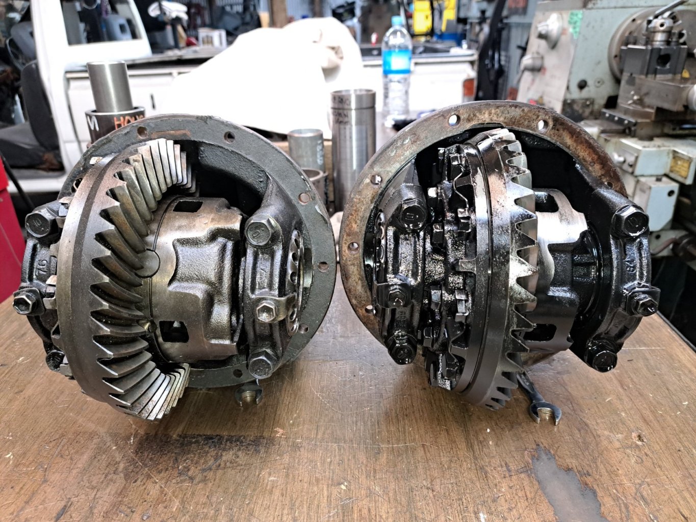Sorry bud, I put you wrong. I was out of the shed and after awhile they all start looking the same. Anyway this pic shows 2 x Hilux diff heads. The one on the l/h side is a LSD. The one on the right is a 4 Pinion. Both are 4 Pinion but only the LSD one has the frictions and steels. That's why the carrier is bigger/fatter (like meee!) This is the LSD one. See how close and minimal gap there is between the carrier and the bearing cap? Compared to this one which has a bigger gap because the carrier is smaller. Both have those windows in the housing making them look similar.