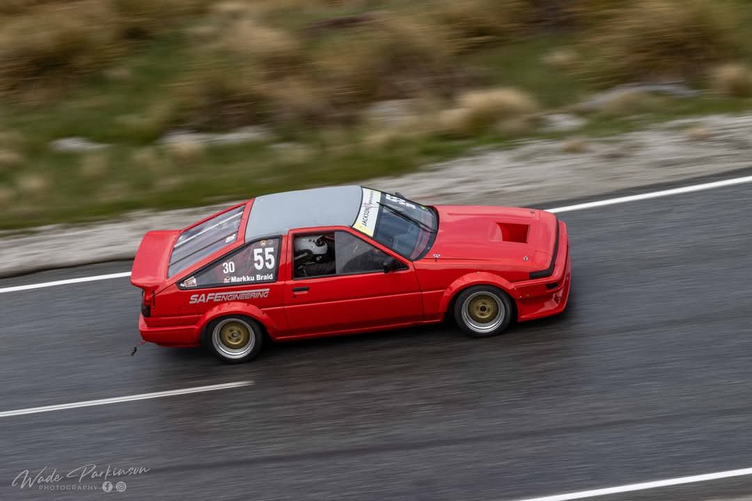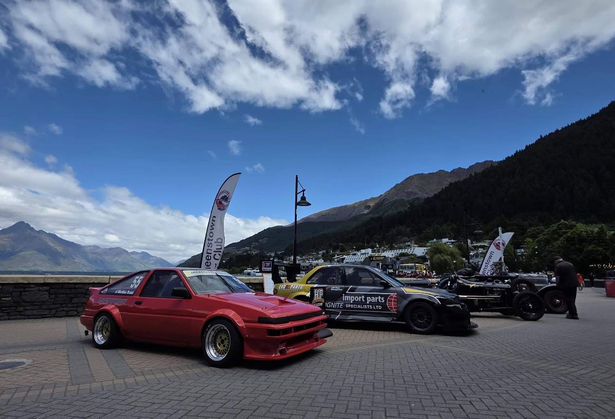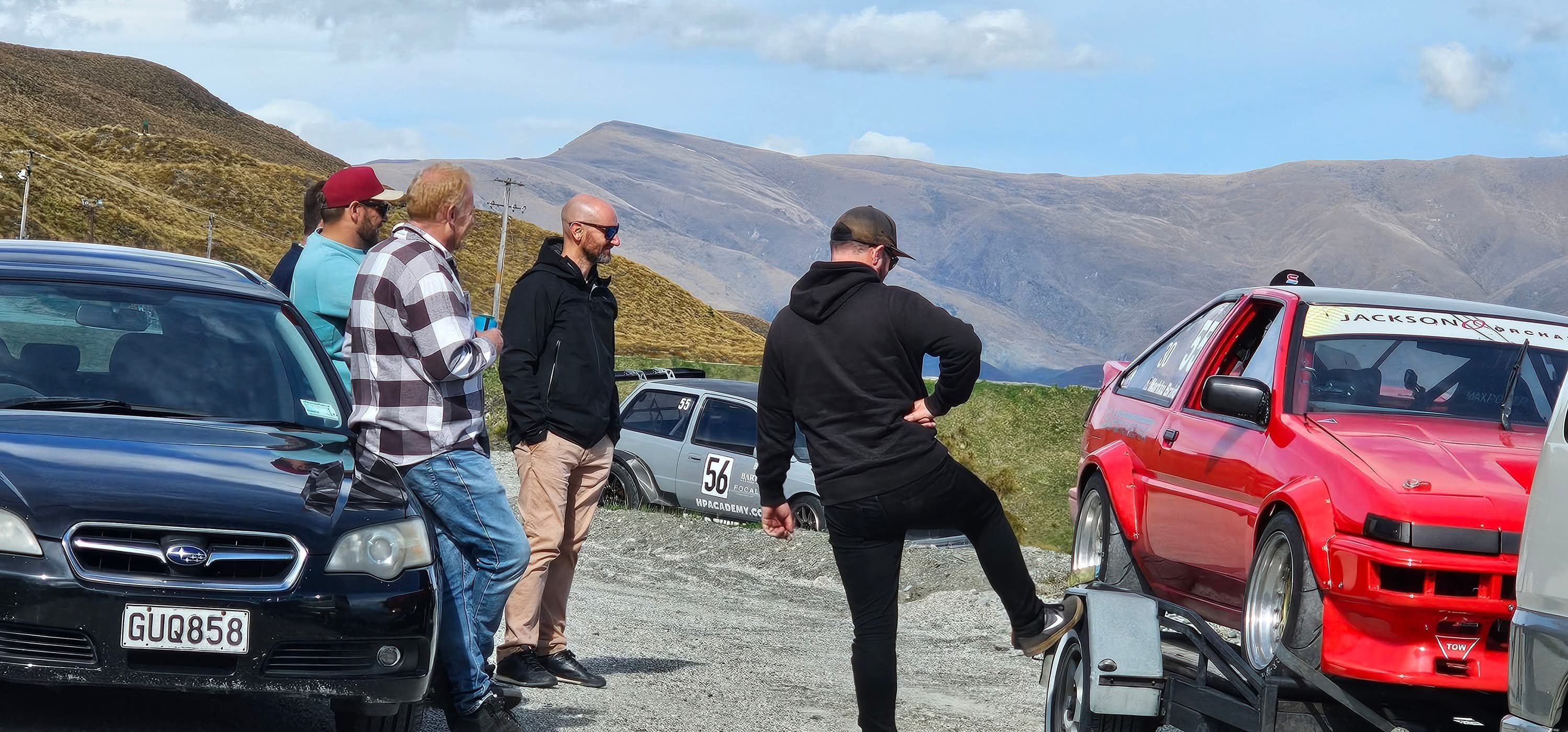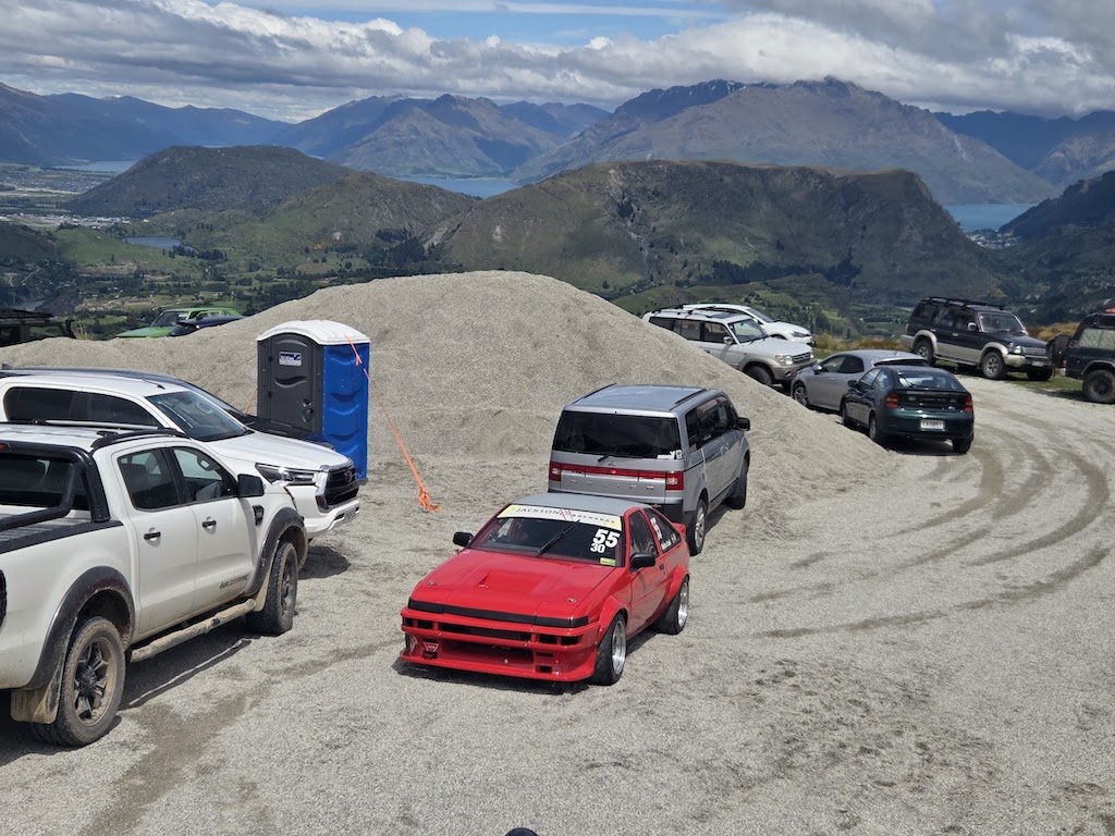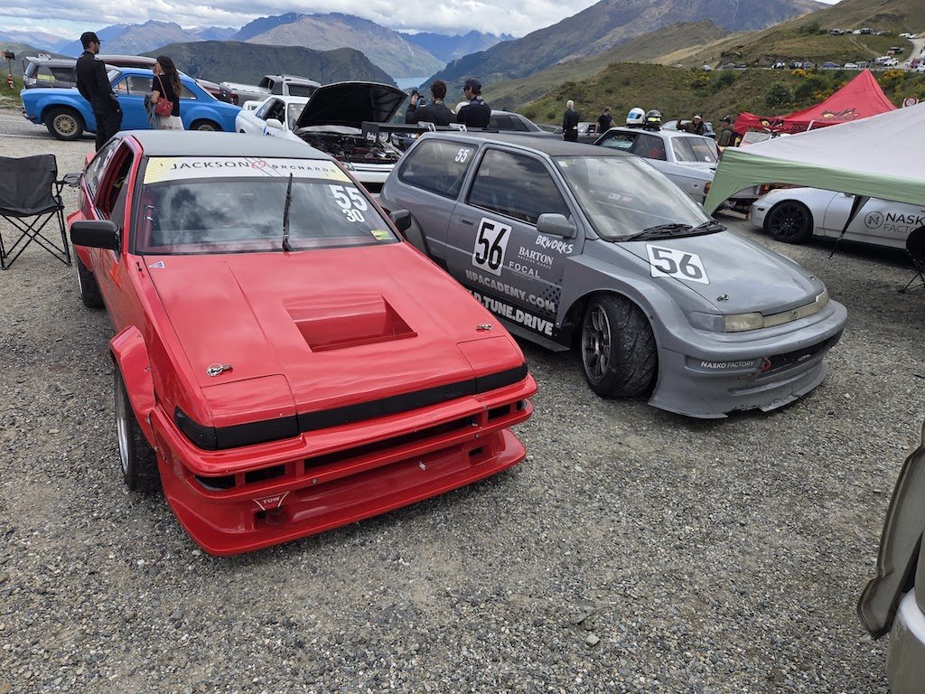 So that brings us to Coronet Peak Hillclimb Weekend. Hard to believe it's been a year since the last one! @GARDRB, @Roman, @Rhyscar and Josh flew down from the North Island for a dirty weekend in Queenstown supporting me and apparently driving my Legacy through terrain most people would think is impossible for that kind of car. I really enjoyed having people in town for it and they seemed to enjoy themselves too. I'm very keen to push for an OS weekend in Queenstown for next year's hillclimb. We kicked of with the car display on the Queenstown waterfront. Old mate from Luis Vuitton wasn't stoked about having riff-raff out front, but we had a permit so he can GTFO. Then we mucked around for a while, did scrutineering and had devil burger for dinner after 10pm. Check out this weird creation that was at scrutineering. A Smart car with crazy aero and a 1650cc+ modified Hayabusa engine. Competition in the 2L class was pretty tough this year. Brad Rule entered in his impressive K20 EG Civic and Andrew Gibson brought his K20 Lotus Elise along. Both cars had a power/weight advantage over me and I was sure they'd both be a few seconds up the road. Brad's Civic has a very spicy K20 that is rumoured to be from Reg Cook's Nissan NX Coupe land speed racer. I pitted next to Martin from HPA. We'd got him ready for the hillclimb and it was his first ever motorsport event! Pretty cool that he could get started in the wild little widebody B18C City: From there it was into the runs. I had 3 runs with a mildly moist run in the middle of the day. My times were looking good leading into the last run of the day. In the last run of the day I was on for a blinder! My lap timer said I was over 3 seconds up on my earlier run... When I struggled to get into 2nd gear and lost at least two seconds at the tight hairpin. Gah! Here's the video: It was still my fastest run of the day and now I know there's at least a 1.36 in the car next year.... The 1.38.3 sat me in 2nd place behind Brad's Civic and in front of the yellow Elise. The whole day was another great one yet again and I'm stoked to have been involved with organising it this year. ... Oh and after all of the time we spent together over the weekend, this is the only pic I can find that has all 5 of us (you can just see the top of my hat behind the car). Who's coming next year?