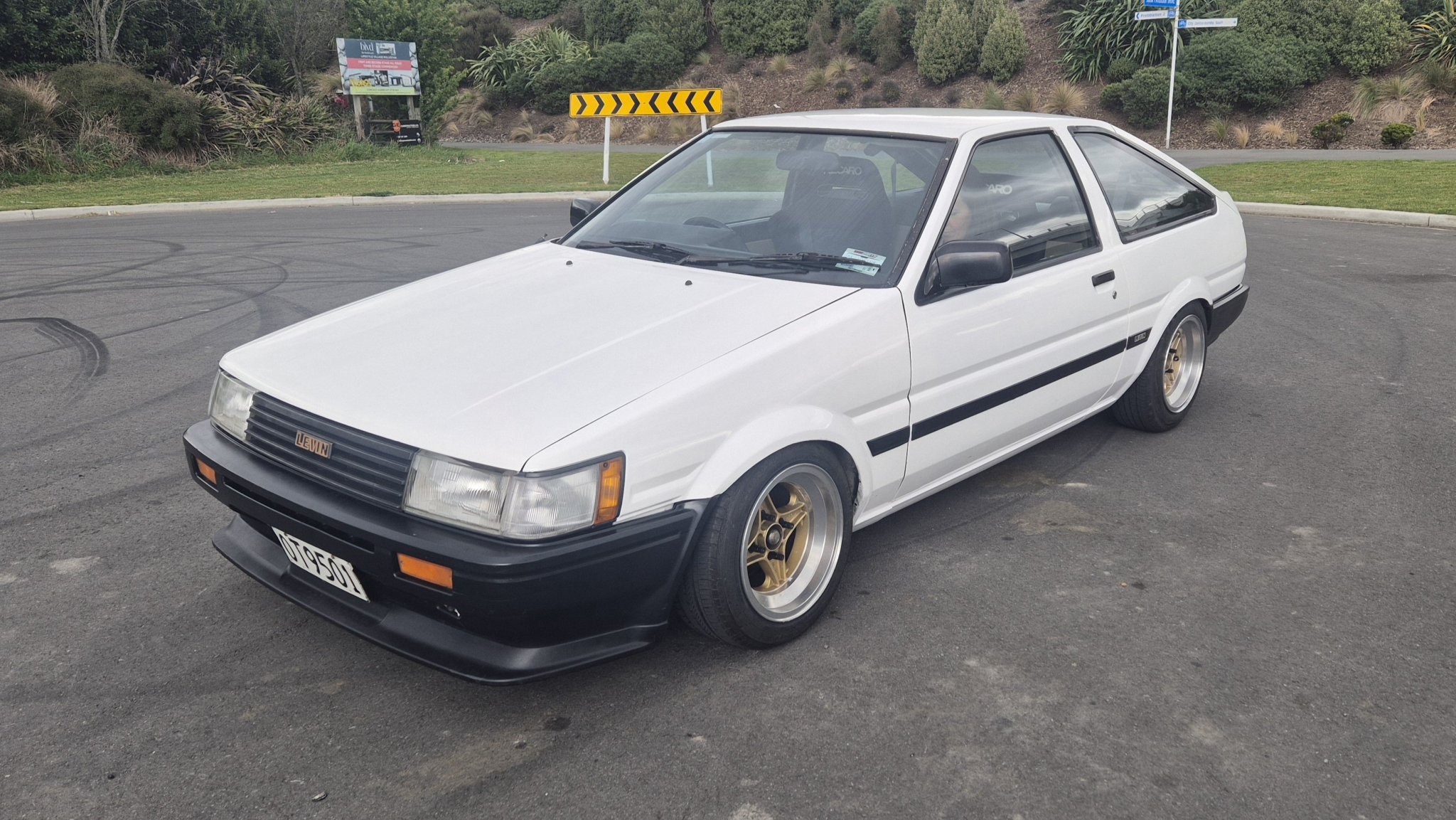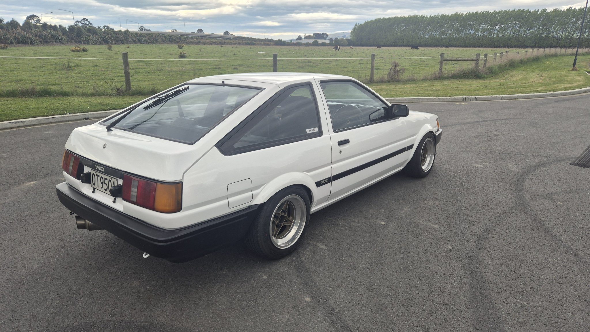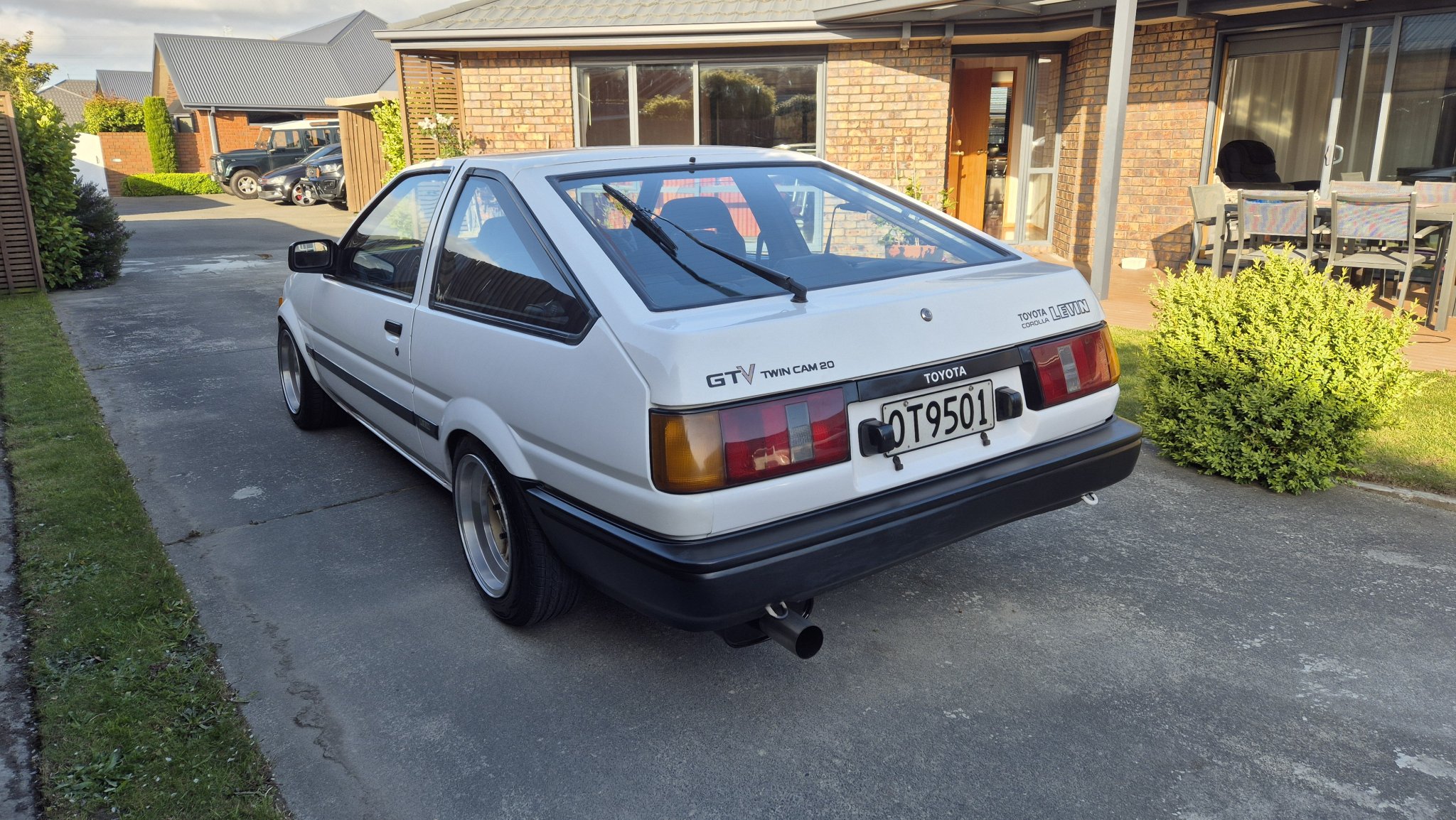 G'day. New motor vehicle time. I've had ae85/ae86 on my trademe search list for a while and a couple of weeks ago one popped up local to me at a reasonable price. Sent it to a mate with three of the things (including a Black Limited) and he reckoned we should have a look. The main selling point was the extensive amount of documented metal work that had been done only a couple of years ago by a reputable fabricator. Almost all the rust prone areas had seen work and an old repair had been improved on. Run down on it as follows. Tickled up Blacktop 20V, T50, TRD lsd. BC Golds, adjustable panhard, panhard support brace, traction brackets, adjustable trailing arms, cusco swaybars etc etc Its on Takechi project racing harts in 14x7.5 and came with a spare in the same size. Recaro sr3(?) confettis. Has a cert for 4AGE and adjustable suspension so is legalish. Pretty stoked to be fair.