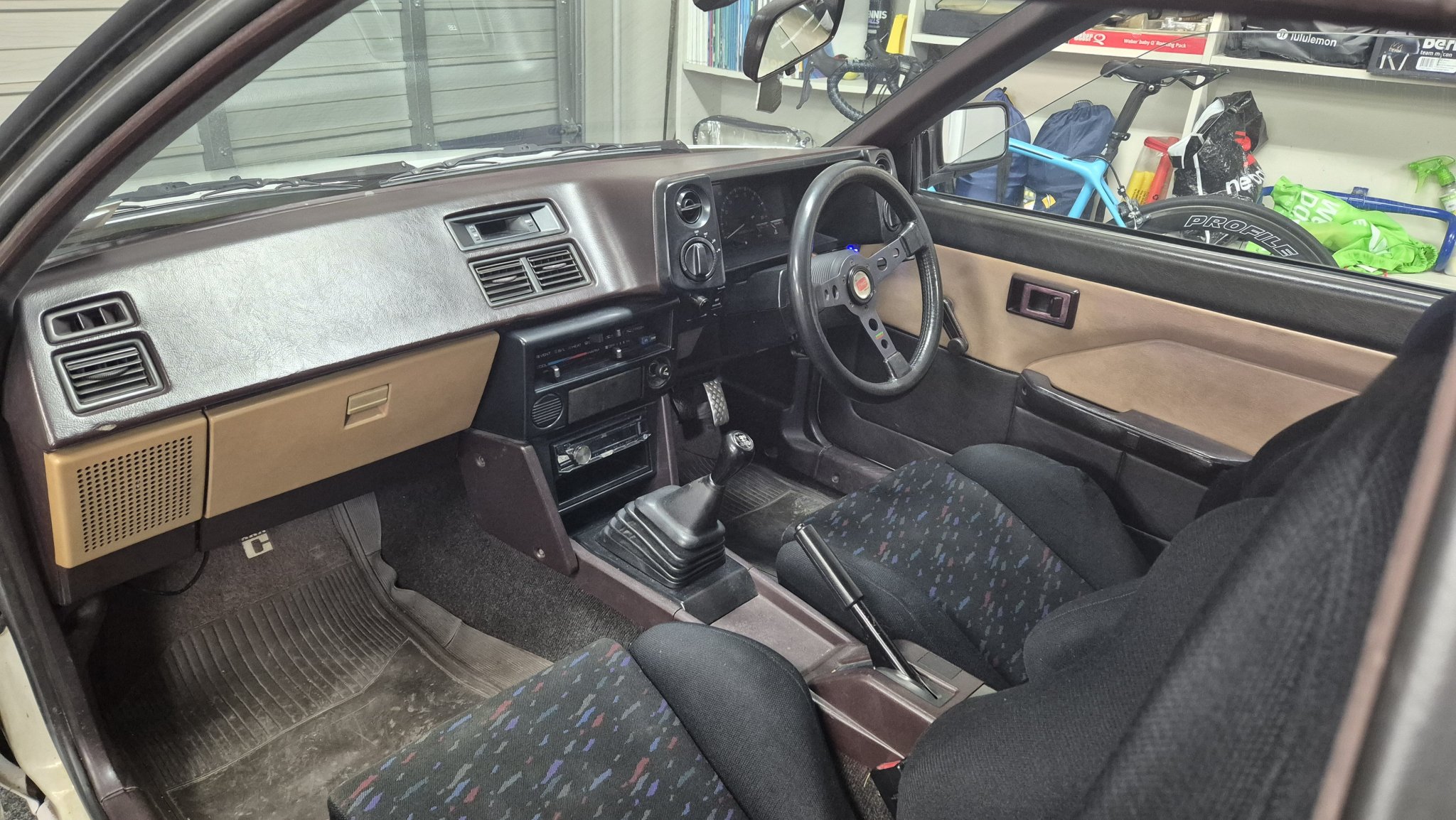 After driving the car a couple of times I decided it was unbearably loud so I had a new rear section slapped on getting rid of the "96db" RSR muffler. Fitted my steering wheel, and put on some hatch decals. Couple of bits on the way from Japan. Still trying to get my hands on some tail lights for a not so exorbitant price.