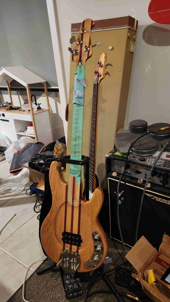 A while back i commissioned a strap to be made for this after a late night browsing, it was advertised as a guitar strap so i got in touch with the maker to see if she could make a 3" wide one suitable for bass, she was only too happy to. She was in the process of moving and said it would take a while but i was happy to wait and im glad i did. its currently fitted to my Samick bass which i picked up for cheap to learn on, its a good instrument but its quite generic. the strap came from https://rockitmusicgear.shop/ which is run by a lady in California and has plenty of awesome designs, also a pretty accomplished musician herself and i was glad to be buying from a person and not another massive faceless company. as a pretty awesome bonus she had also included these little 3d printed cats and amps pick holders that she makes. the whole family loved them and they now live in our library on the shelf with various other little trinkets, and also the room where my wife practices. (i dont actually use picks, but i love cats and i love amps)