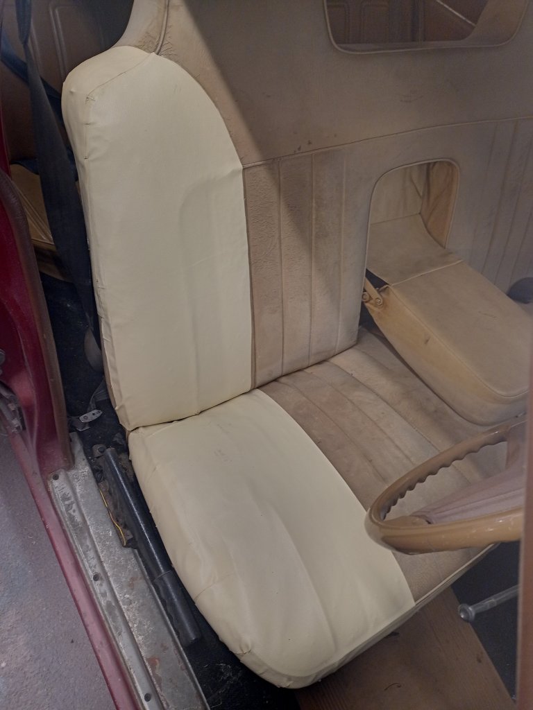Ehh. Its better than it was. If that doesn't peel off immediately well get some of that dye spray paint and do the whole seat darker to match the door cards and rear seat