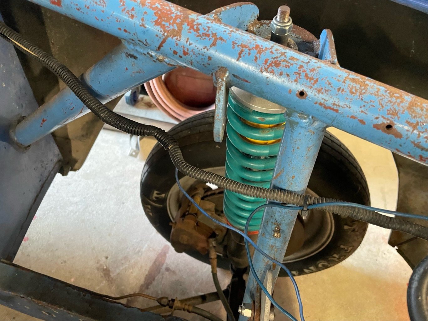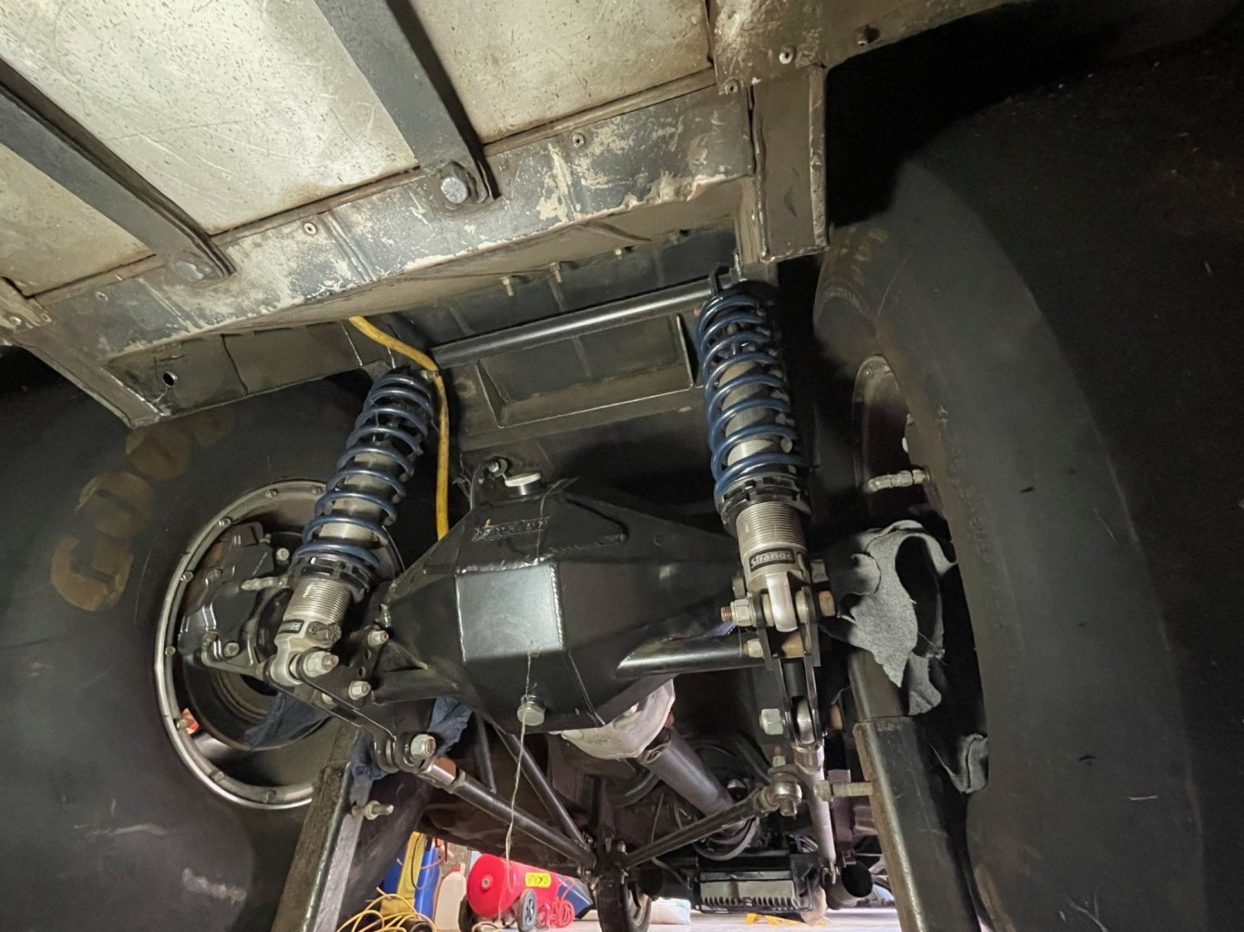 thanks! you mean here? Still has original chassis rails up front, and steel panels. Inner wheel arches have been removed though.
