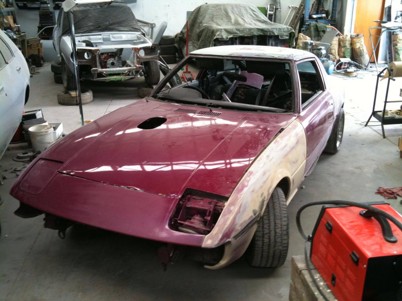 Hey guys n gals This is my newly completed project build-up from the last god knows how long (4-5 years maybe?!). Acquired it is a rough rolling body, with rust-chomped doors and sills. However I saw through the nastiness to the potential of getting it back on the road where it belongs. Too many get parted out when in a reasonable condition and I couldn't bring myself to strip it. The first several years it sat in storage whilst I slowly starting obtaining the parts I needed to piece it together. A buddy took it under his wing in this time to straighten out the panels and primer coat it. I had no idea what colour to go for at this stage and decided it was best to make that the last thing on the list. I obtained a stripped old skool 13b block through a connection, and got together all the required kit for a complete rebuild. The plates were a throw out so we found some good donor series 4 plates, the rx4 housings were really nice for their age so I got lucky with that. A good friend who is a hobby engine builder of great reputation did the assembly for me whilst I worked on finishing the interior and acquiring the running gear. I found a series 4, 5 speed box and had the shifter position shortened to save cutting up the gearbox tunnel. It has an Exedy 4 puk ceramic heavy duty clutch mated to a Green bros lightened 12 pound flywheel. Everything was dropped in with relative ease although mounts had to be fabricated to suit the upgraded motor and box. For certification purposes a drive shaft loop was made up and the driveshaft itself had to be cut down to suit the new gearbox placement. I decided, (being an 80's kid with a 90's rotary passion), to keep the block N/A and fed by a 48mm Weber IDA. Of course the mandatory high-rise K&N filter was to sit through the bonnet also! The Weber is fed via 3/8 stainless braided lines from a Carter pump which keeps up with the demand. The bridgeport is cooled through an aftermarket 3 core aly rad and oil cooler which do their job well even in heavy traffic or under high revs. Another buddy (Andre Antonievich Automotive -shout out!) fabricated a new exhaust to suit. We opted for Adrenalin R resonators and 7" muffler in a two to one,under the diff formation. At this stage security was the next concern as it was starting to turn heads whilst being trailored around. My auto sparky buddy wired in a 5 star arm complete with GPS tracking with is great piece of mind. It gives you the ability to disable the engine remotely and track not only location, but speed and revs. I replaced most of the interior and had to turf the original seats due to being irreparable. Recaro reclineables were fabricated to suit the existing floor rails. Most other dash and interior items were replaced also to complete the look. Carpet was also replaced as the 30+ year stuff was starting to stink a little. Once everything was wired up and engine was tuned over the Rx7 was taken to Brent at Dynopower Tauranga for a pre-run in tune on the dyno. The car was making great power at such an early stage and only minor adjustments were needed to the electronic dizzy and MSD spark set up. The car was then taken to be certified in Papamoa, and got the all clear on its second visit after some minor issues needed addressing. Back to my buddy who did the original panel work years before to complete the job.......I had decided on a subtle yet clean look, nothing too bright and bold like some of the other early rotors on the road. I found a grey tone by Lamborghini called 'Gregio Telesto'. It has a blue/grey appearance in the shade but under sunlight a gold and sky blue shimmer too. I have various sets of wheels for the Mazda but it rides best on the 15" Challengers which are normally on it. Future work includes adjustable suspension to get a more aggressive lower stance, and the possibility of a 13b turbo engine swap once Ive had enough fun with it Cheers for reading, if ya see us out and about (most likely gassing up) feel free to say hi or have a yarn, Im more than happy to talk if your planning a similar resurrection! Noomz