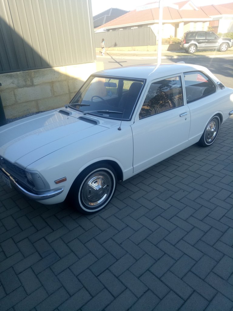 This is my 1973 ke20 rolla... started with a pretty good shell and is now even better... full panel + paint, legal lowering, new door cards/parcel tray Few pics Before All rust gone + door lock shaved brand new paint The final trim, now the inside starts to get done in black and red