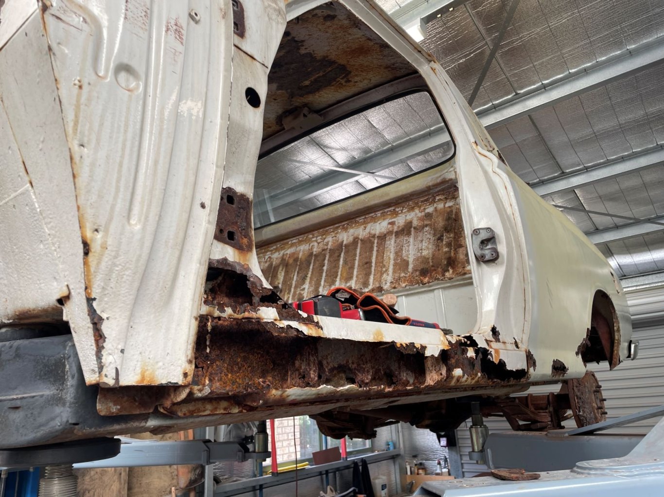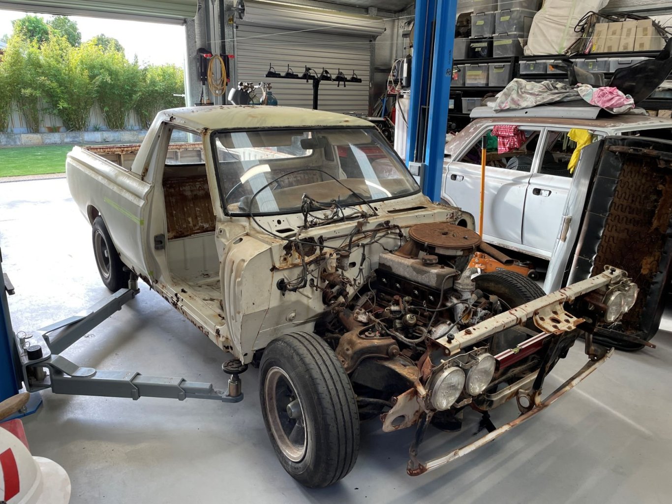 After spending quite some time reading posts of other people's vehicles - I figured it was time that I got my shit together and posted my rusty junk up for the world to see. After developing an unhealthy penchant for 1969 - 1970 Toyota Crown's some time back, I have seemingly added a hobby to the list of hobbies - collecting Crowns. As was told to me after finding my first - 'You can't have just one!' - the collection has grown. The latest, being this RS56 Ute.... This old girl is the latest addition to the fleet, which currently comprises of 1 x MS55 Sedan and 2 x MS51 coupes (separate threads to be generated for those at a later date.....) Anyways. I get a message from a guy I have bought from before, and the conversation basically went like this; Him: 'Want to buy a Crown Ute?' Me: 'Yes'. It was made known up front that the vehicle was pretty rough, and that a sedan 'half cut' was available at a reasonable extra cost to support with rust repairs. And so it was done. Photos were sent after the agreement was made which did little to curb my enthusiasm. All collected one slightly miserable weekend. Stoked as. Of all the Crown shapes, the 50 series really do it for me. Of all the 50 series body types - the ute really gets me rigid. Once I got it home (and made some space in the shed) it didn't take long to work out just what shape it was in.... Uhhhhhhhh...................... Oh well. I sorta knew what I was getting myself into - so carried on regardless. All in all, the front half of the cabin is..... garbage. But that's why I purchased the front cut of the sedan. Beers were had, and plans formulated. *EDIT* Page of discussion here: