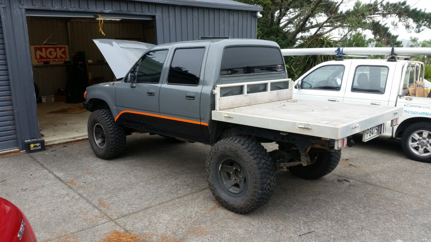 Ive been following Kpr's hilux build on here after seeing a video on facebook of it shredding mud and decided people might want to see how i guess a similar build is going. (not trying to steal spot light just think people might be intrested) bare with me i have like 200+photos and alot of info to type so may take awhile im a drainlayer by trade so deffo not a pro but have had my fair share of building 4x4s and other things. haters shall hate... ill start from the very begining, so after i finished building 2x nissan patrols i wanted something abit more exciting, so feburary 2017 i aquired a certified 1991 ln106 hilux with a 350 sbc with a R series toyota box behind it, it ran like shit when i brought it so the mods began and i got it running nice again with new carby, leads, intake etc