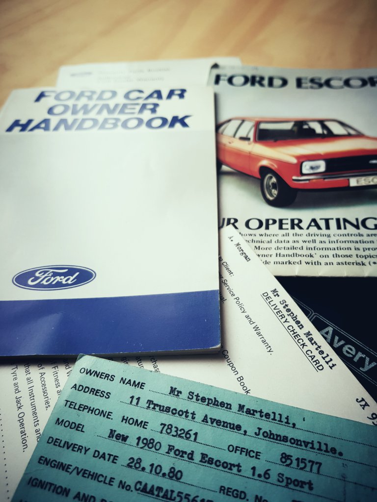 1. OK team, it all starts this weekend and I thought I would kick off my first build thread post. I got my first car when I was 16. A poo brown 1979 Mk2 1300 4 door. This was alright for a while but it wasn't long before I managed to find a red 1980 Mk2 1600 Sport. This was purchased for $1000 and had a wof and everything. I put in my race motor and raced round the streets of Wellington. I think it was the loudest car around. Unfortunately rust was ripe in the Sport and I figured, being an apprentice mechanic, I would strip it down, fix the rust and rebuild. Well stripping it down I found it way worse than I imagined and it got brushed to the side while I found myself a new toy. The car got sold as it was and that was it. What an idiot I was. I always regretted selling it and when I finally decided to try and get my hands on another, prices had skyrocketed and I have spent the last 17 years always keeping my eye out but the dollars asked for anything close to what I want was well out of reach. In December, my wife was dropping a colleague home and spotted something red with a Ford badge in the corner of their garage. She asked what it was and it turned out to be the husbands 1980 Mk2 1600 Sport which had sat there for around 10 years. She came home and told me about it. I had her arrange a visit for me despite the car not being for sale or anything and a week later he had pulled it out of the corner and I was looking over this thing. It was stunning. It had a pretty average respray on the exterior which was starting to bubble but all the usual rust spots were incredible. Then, he asked if I wanted to buy it, things fell into place and it now has a new owner. The idea is to take it back to showroom condition. The photo of the paperwork it has is pretty much a testimate to just how good this car is. I will build a bit of a build list but will pull everything out, start a shopping list, freshen the motor, rebuild brakes and do a respray and see where we end up. I will keep this as up to date as possible but I can not wait to be out cruising the streets of Wellington with my wife and daughter in what is pretty much my dream car. https://oldschool.co.nz/index.php?/topic/58013-bams-1980-mk2-escort-1600-sport-discussion/