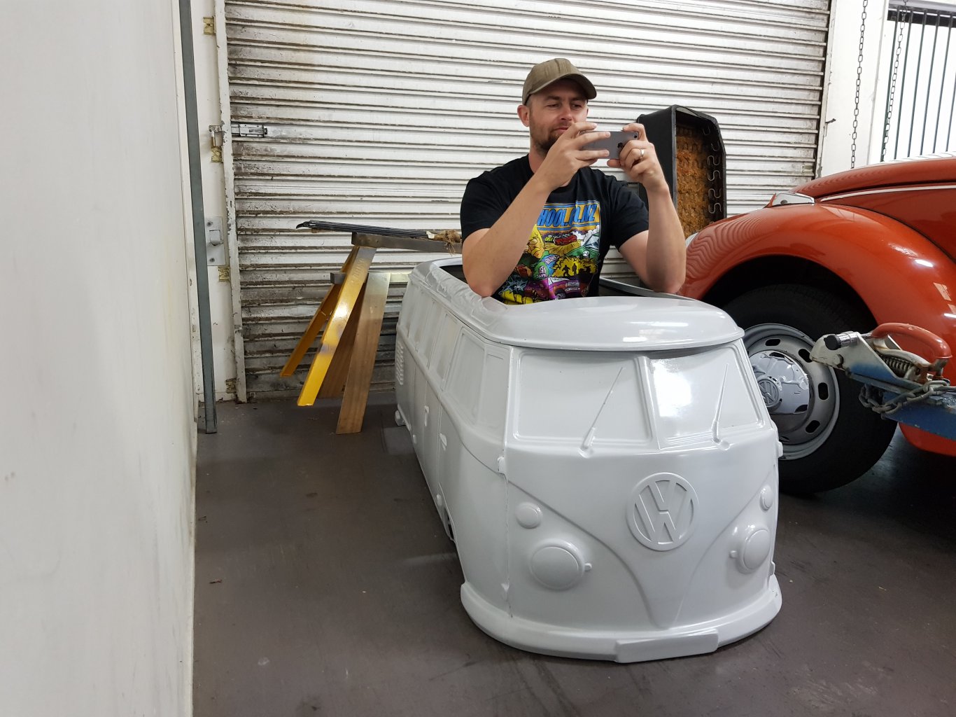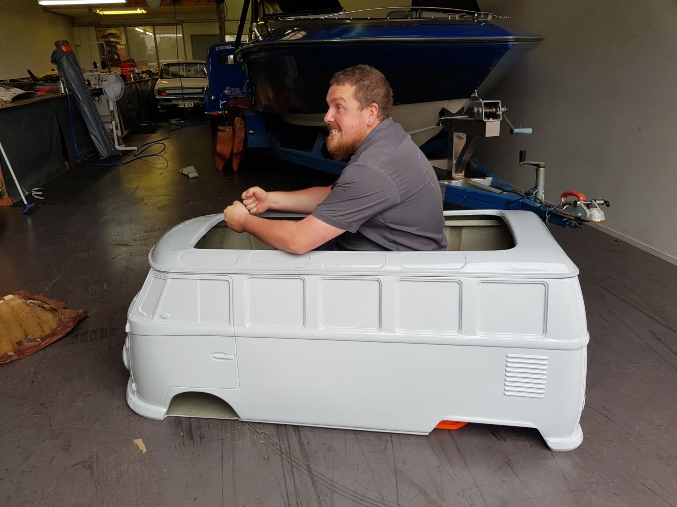 Right-e-o. Cause I didn't have enough projects on the go I thought I would start another one. Well I kinda gotta start another one to sell a few more of what I've got. So I brought the 1st one so I can show case what I'm going to sell. And hey it's a car. It's oldschool and yeah it will be slammed. So without further ado here is my 1st split window kombi. Me for scale @Archetype for scale So the plan is either find a little go kart chassis and engine or maybe a quad. Make it work keep it slammed and get it ready before kumeu. The guy who is making them for me is going to put a mobility scooter in his but I'm going to want it hide as much as possible I think. Have spoken to Brent and we are going to make some window stickers up to make it look more realistic. But hey here is the beginning of something cool.