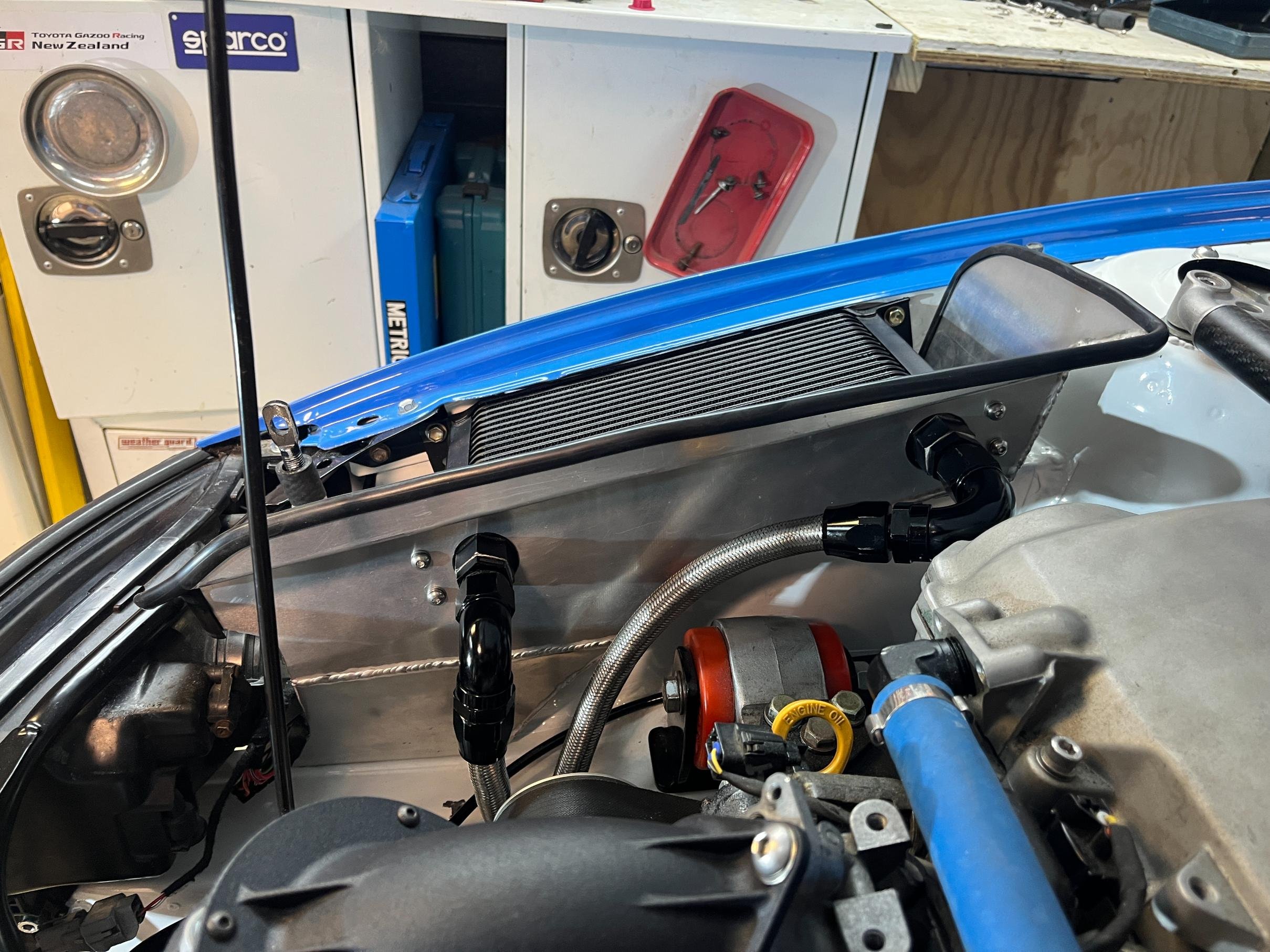 Popular Post Rhyscar Posted April 16 Author Popular Post Posted April 16 (edited) Got the bonnet vents painted in satin black. The original PA12 Nylon finish was pretty cool, but looked slightly faded, and I thought it would only get worse with time/UV exposure. Wanted to keep on-theme with the rest of the trim so I spent HOURS sanding out the grain, priming and finishing these. Not 100% perfect, but pretty close. Now to glue them in using Sikaflex marine urethane.. The optics of the vents are really weird from different angles. Believe it or not, the inner edge of the vents are parallel. Still haven't got a good gauge if I've got the aethestics right, won't be able to tell until it's out in the wild. Perhaps a reason for version 2 at some stage? Oil cooler mounting and duct work complete. This is a hugely complex alloy fabricated piece to mount the cooler to the wheel tube. All sorts of funny angles going on. But happy it's done (still needs to come out to go to powdercoaters though!). Engine bay looking pretty good. Finishing touches are coming together slowly. Still not quite sure how I'll vent the radiator as there just isn't as much space above the gearbox as I'd hoped - but that's a future Rhys problem! Only thing it's missing is the airbox - which is in progress. Buck is close to being complete. Will end up making a lightweight mold for this part, mainly so it doesn't grow in size by 1.5-2mm each direction (because then it won't fit!). It's bloody expensive, has a lot of opportunity to go wrong and getting it fitting well will be a challenge, but the end result will be worthwhile! Fingers crossed on this one. Can see the layers that make this up - 3D printed shell, expanding foam and lots of filler. No interesting pics, but with some help from my friend Dan, I rebuilt the SW20 MR2 CV's with some hi-temp grease and new OEM boots and clips. Should withstand a bit of abuse before their inevitable failure. Have also double-checked cooler/filter routing, flowed the housings and reassembled, ready for a good road test. Things left to finish: Fit driveshafts, fill gbox with lube. Glue in bonnet vents. Test new oil pressure mods & check oil temp where lift works. Door cards cut, bead roll & fit. Fabricate Radiator duct. Powdercoat all duct work & doorcards. Airbox complete & fitted. Install Oil pump. Power steering cooler plumbing. Finish running the extinguisher through cabin & to engine bay. Run internal and external pull cable to cowl. Perhaps even get it's first scrutineering check so I know what's needed before I can enter an event. Upgrade steering boss kit & spacer to something less unsightly - pet peeve of mine. Strut brace mods and gluing together. More rollcage padding. Tyres - thinking of going with Nangkang CR-S. Anyone have experience with them? Fix bloody leak in tank breather fitting (this is pretty much a tank out job - ARGH!). Windscreen banner. Paint rocker cover - if I get everything else done.. Wow that's actually a longer list than I expected, but it is getting shorter at least. Still pushing hard, the end is in sight! Edited May 11 by Rhyscar Crossing things off the list yo 16 Quote