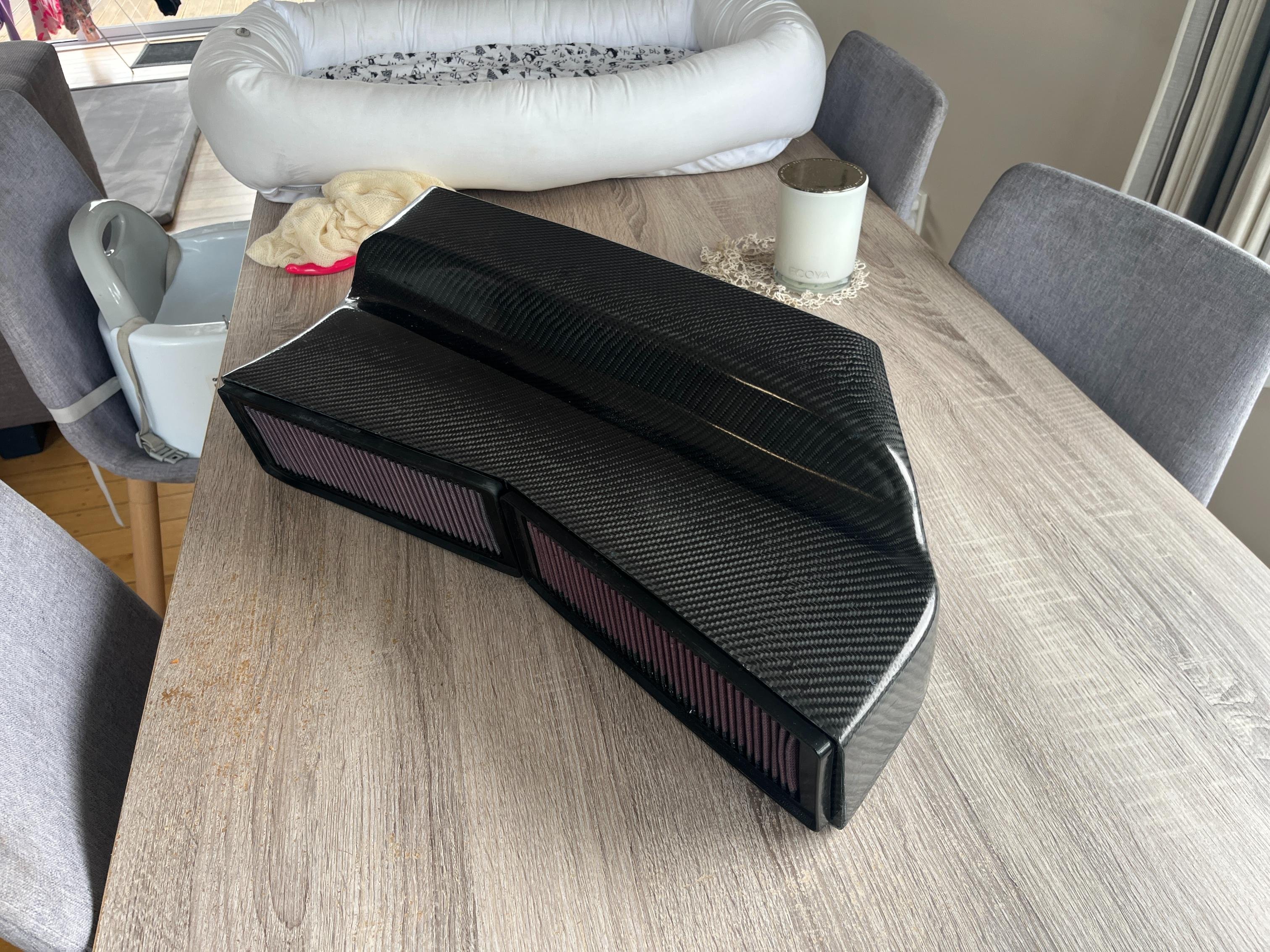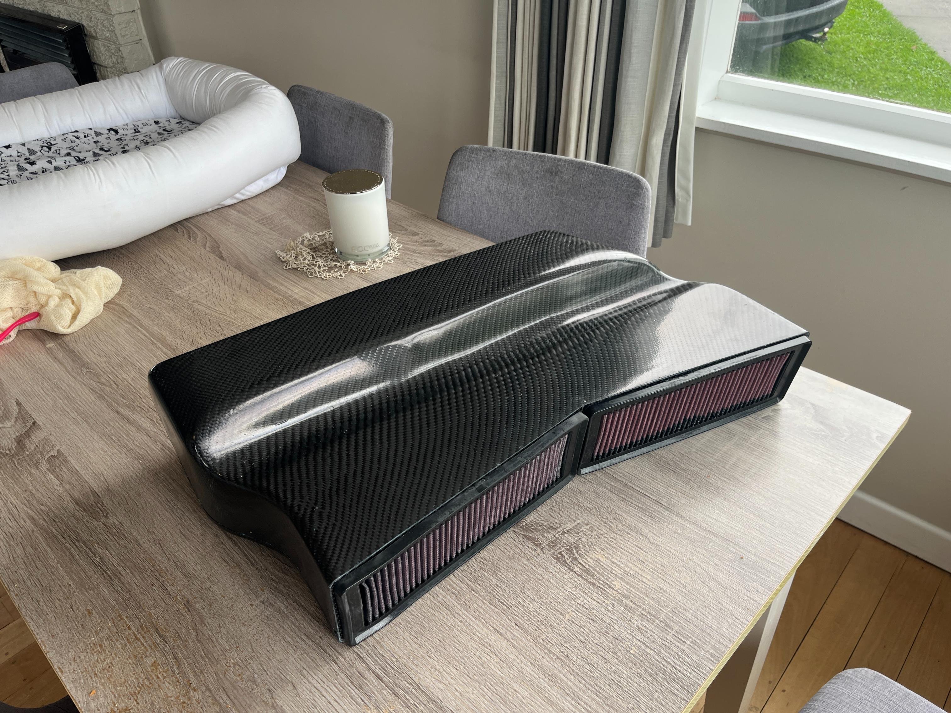 Popular Post Rhyscar Posted March 13 Author Popular Post Posted March 13 Airbox update #37… full size print arrived from Lithuania. Quality is very average, but should be good enough to make a mold and get a carbon part from. Found a few more small adjustments needed but these should be easy to sort in the mold. Annoyingly, I didn’t check bonnet clearance thoroughly enough on my previous prototype and the extra 5mm means it makes contact. Next challenge is to design and 3d print a stainless retaining ring for the inside with blind nutserts so I don’t need to individually locate 12x nuts inside the airbox when installing. This will also act as a washer to spread the load across the carbon. Also means less chance of tiny nuts vibrating loose and going through the intake! Very excited about the next step!! Been a long time coming 14 Quote