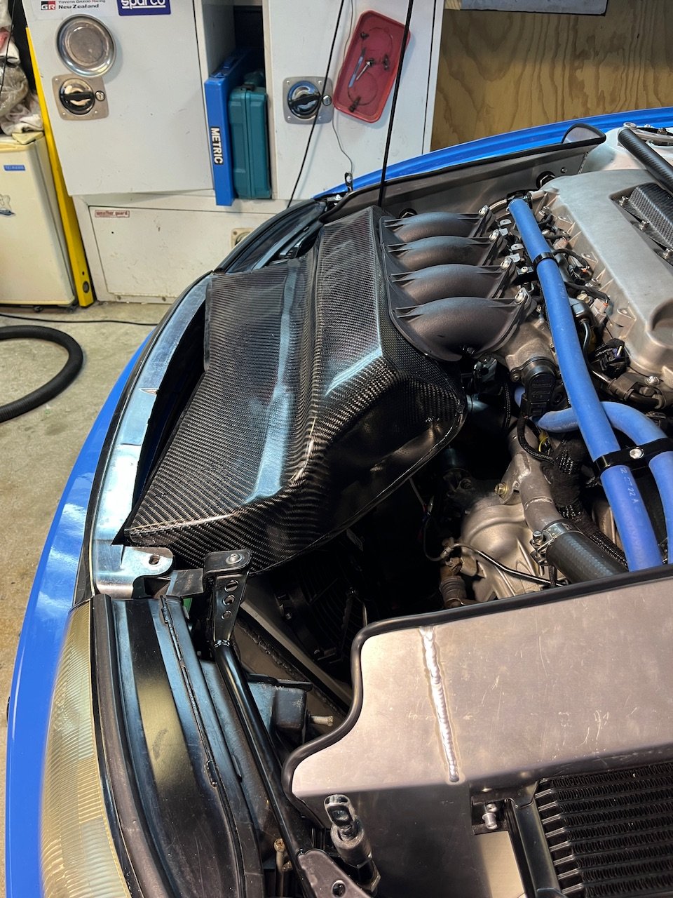 Popular Post Rhyscar Posted April 3 Author Popular Post Posted April 3 Wow so much progress lately, including delivery of a new son! First up replaced the c5 corvette filter reg with a turbosmart return regulator. Added a gauge for a visual double check of what the ecu says. Took airbox to Mike Shaw fibreglass and discussed the plan. Agreed to put a but of work into flattening it out and remedying the errors in the 3d printing. Unsure if this is due to using petg, the company or the design - could be a combination of all 3. But unfortunately this has caused a huge amount of extra effort and will probably double the cost of the airbox too. Filled with foam, cut 10mm off the top where it was hitting the bonnet. Made a removable core so I could slip it over the trumpets once I’d filled with foam. I had a go at bogging it myself to varying levels of success. It got it maybe 30% of the way there. Mike Shaw will finish the rest of it. so oil pump from boundary in USA showed up. Pretty cool piece of gear. Came as a complete assembly with front cover, billet back plate and relief valve etc. pretty much the best solution for oil pressure I could find other than a mega expensive dry sump. Cut holes in bonnet for vents and working on sanding smooth and painting these stain black. Been working on ducting for power steering and oil coolers. Keen to get this finished off soon so I can get off to powdercoaters Some aluminium 3d printed parts showed up today. First is a retaining ring for the inside of the airbox. This is so I avoid needing to tighten 20x m4 nuts in a tight space where I’m likely to drop one and it end up inside the engine!! Pretty cool level of detail and strength in this part. Section is 8mm tall and 8mm wide for reference. Another cool piece of 3d printing is the strut brace tops. I made a few design changes to these to make them lower profile and a little stronger. I’ve actually made it too low profile and now it’s touching the rocker cover, so will need to figure out what mods I’ll do to solve this. Thinking I’ll take a section from the carbon tube at this stage. Can prob get a few mm from spacing the bosses before they hit the bonnet too. Love the design, looking forward to finishing this part off. got injectors cleaned and flow tested as we had a slightly lean plug on #1 cyl on dyno. Injectors checked out algood thankfully. Thinking it could be due to non-return rail and slightly different flow characteristics at the end of the rail. Drained gearbox oil and turns out there wasn’t much there maybe 2L or so. So i discovered I’ve had an oil leak and more than I expected must have disappeared. Unfortunately it is leaking from the Input shaft seal which is annoying as it’s complete gearbox disassembly to replace… So that will be a massive job I’ll put off for another day (maybe when I finally pull the trigger on a final drive kit from Thailand!) Also got some new Cv boots from Toyota to fit with hi temp grease. Slowly getting through the list to do before next dyno session. It’s doing a pretty good job of emptying my bank account as well, so looking forward to the finish line. Onwards and upwards, getting closer to being finished! 13 1 Quote