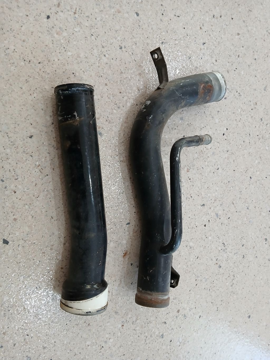 Popular Post Flash Posted November 6 Author Popular Post Posted November 6 Something that has been irritating me for a while is this: Happens every time I have more that a quarter of a tank on board and its got to the point where it is starting to discolour the clear coat. So time for me to do something about it. First up a bit of background to the issue: In original factory format the van comes out with a non vented fuel cap that looks like so: Under normal circumstances the non vented cap works perfectly as the fuel tank is equipped with a little breather inlet that draws air in through a piece of hard pipe that is looped up in the right hand rear fender well. Now in my case the Toyota 3Y engine has a return line on the factory fuel pump that looks like so: Back when I did the engine swap I cunningly ran a return fuel line from the pump back to the tank and repurposed the breather inlet for the returning fuel. Then in order to let the fuel tank breathe I installed this vented cap which not only allowed in air but also enabled me to protect my precious fuel with lock and key: Clever me ..... not. Little did I realise at the time that I was busy creating a source of ongoing irritation. Anyhoo, what to do. So first step is to ditch the non vented fuel cap. Easy peasey, just go back to the original cap that was languishing in my box of spares. Thoughts of fuel theft be damned I say ! But how do I vent the tank ? Well how did Toyota do it ? Aah, I'm glad you asked. They had one of these: Vent pipe built into the filler neck. Damn clever those Japanese ! However, not so easily replicated on my van as the factory filler neck tapers down from the cap end and pushes snuggly through the rubber body grommet from the outside. So there is no way of getting a similar vent pipe through the body hole. I briefly toyed with the idea of trying to fit a gubbins like so into the Thames filler neck: But ended up putting that idea aside for now. My next thought was to see if I could make use of the Toyota fuel tank neck (I have two of these leftover from my donor vans). Quickly pulled out the Thames neck and laid it alongside one of the HiAce necks for comparison. The difference in pipe diameters is more noticeable at the cap end with the Toyota cap looking pretty dinky. Also the Toyota cap is also not the prettiest of things as it's usually hidden away behind a petrol flap, so I'd need to consider that. On the plus side the Toyota pipe is equipped with one of those spring loaded flaps to prevent fuel back surge. Looking closer at the Toyota neck, in order to make it fit I'd have to cut the pipe just off the lower bend - about here: And that makes it tricky as the pipe is quite a bit narrower than the Thames one at that point. Apart from the ugly Toyota cap, the other challenge would be trying to make the narrower Toyota pipe look half decent where it passes through the body as there would be a huge gap between the skinnier pipe and the rubber body grommet. I could make up some kind of metal collar to fill the gap, but again I've put this option aside for now. On to my next train of thought. What if I teed into my return line and reinstated the looped breather pipe in my left hand rear wheel well. I've got a few doubts about this plan. First up when exactly does the return pipe feed back fuel. Quickly pulled off the pipe at the tank end, shoved it in a jam jar and fired the van up. At idle fuel started pissing into the jar almost immediately and is a constant stream. I'm guessing at full revs the stream will become less, but either way I need to factor in almost constant fuel flow. Okay so what are the chances that fuel will exit the vented loop rather than going back into the tank. Only one way to find out, so I rummaged through my stash and came up with a brass tee that looked like so: More rummaging uncovered some rubber pipe offcuts of matching diameter and a few "used but not abused" hose clamps. Chucked it all together and it ended up like so: Not pretty, but okay for a test run. Then bent up a bit of left over bundy tube and clipped it into the original bracket inside the wheel well like so: Fitted the non vented cap then fired her up. No fuel pissing out the vent pipe, so that is good I guess. I'm hoping that the returning fuel rushing through the pipe will draw in air from the looped breather tube. But that's just a guess at the moment. I'll need to take the van out on the road for further testing, so thats the plan for tomorrow. Thanks for reading. 10 Quote