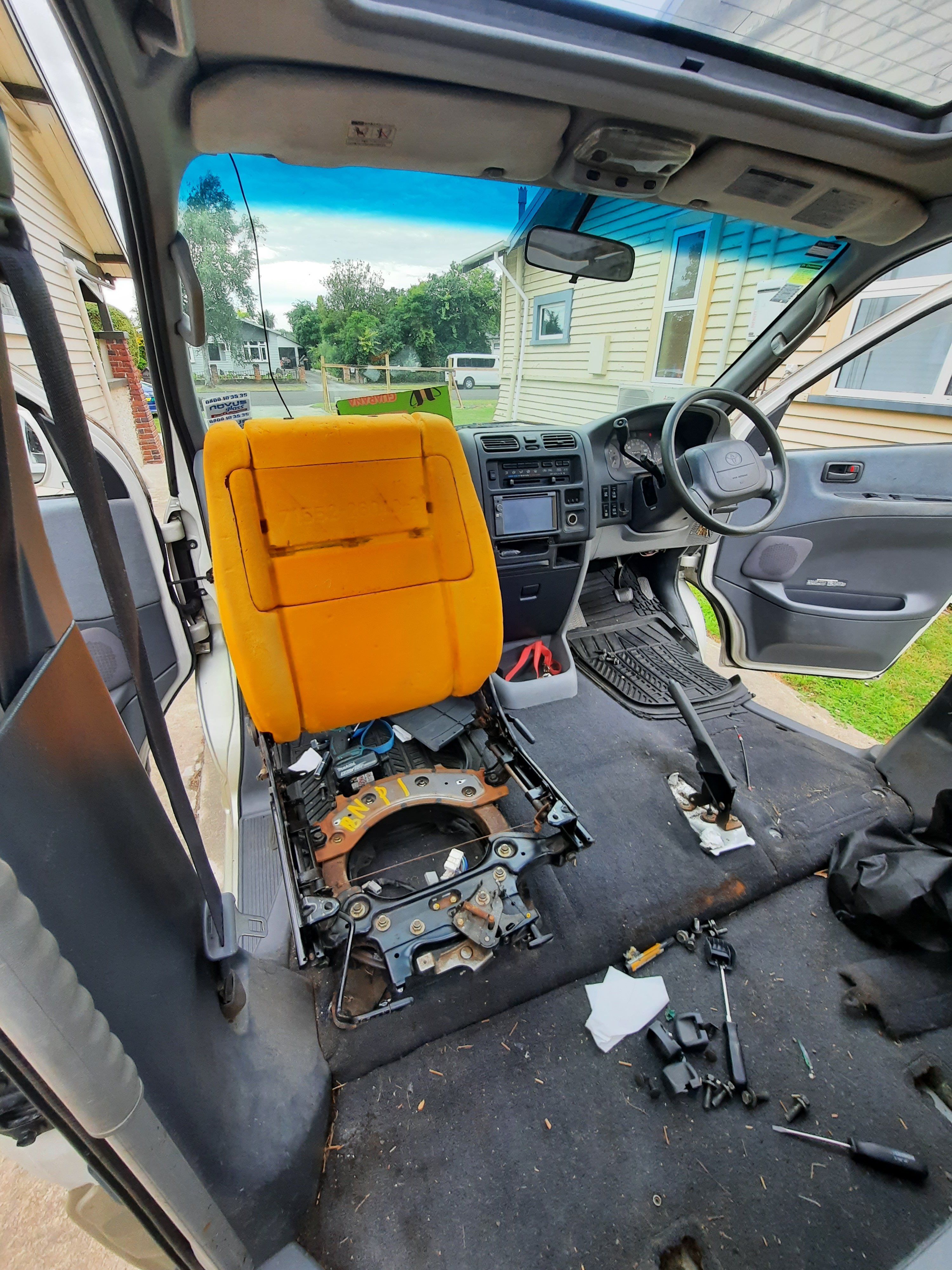 Popular Post Truenotch Posted December 23, 2023 Popular Post Posted December 23, 2023 After years of thinking about it, I finally bit the bullet and bought a van! Not just any van either, it's a luxury 1997 Toyota Granvia 4wd with 1KZ turbo deeeez. I've been living in Queenstown for 6 months now and realised a couple of things: 1. I need my racecar in the South Island 2. 4WD vans are super handy for towing and mountain bike missions Being the smooth-brained creature I am, it seemed like a great idea to buy a van in the North Island so I could tow the AE86 down after Christmas. Enter: Francis Jellybean GranV a.k.a the Lizard Lounge. @DodgySam and @Ogre were GCs and went to check it out for me in Rotorua. The consensus was that it's dirty, but mechanically solid. The guy wanted to move it on, so we struck up a deal and I sent him a few macaroons in the electronic-post. @UTERUS collected it for me and my parents drove it back to Palmy North, where it's be sitting until I got here for the Christmas break. Someone marked their territory before it got back to Palmy... I originally wanted a Regius, mostly for the rotating front seats and rear seats that fold into tables, but beggars can't be choosers. Luckily there was a Regius at Pickapart Wellington, so my first job was to shoot down there to investigate if Regius seats could be swapped into a Granvia. The answer is "kind of". The seat bases mount to the floor the same, but the actual seat rails are slightly different. That's annoying since seat rails are $15ea at pickapart and complete sears are $55ea. I bought both complete front seats, even though the upholstery was ripped and stained and figured there would be a way to make them work. I may have got carried away buying things... the front shocks were a score! And the Regius I raided was a gold mine for Yen. This more than covered the $2 entry fee at Pickapart. 21 3 Quote