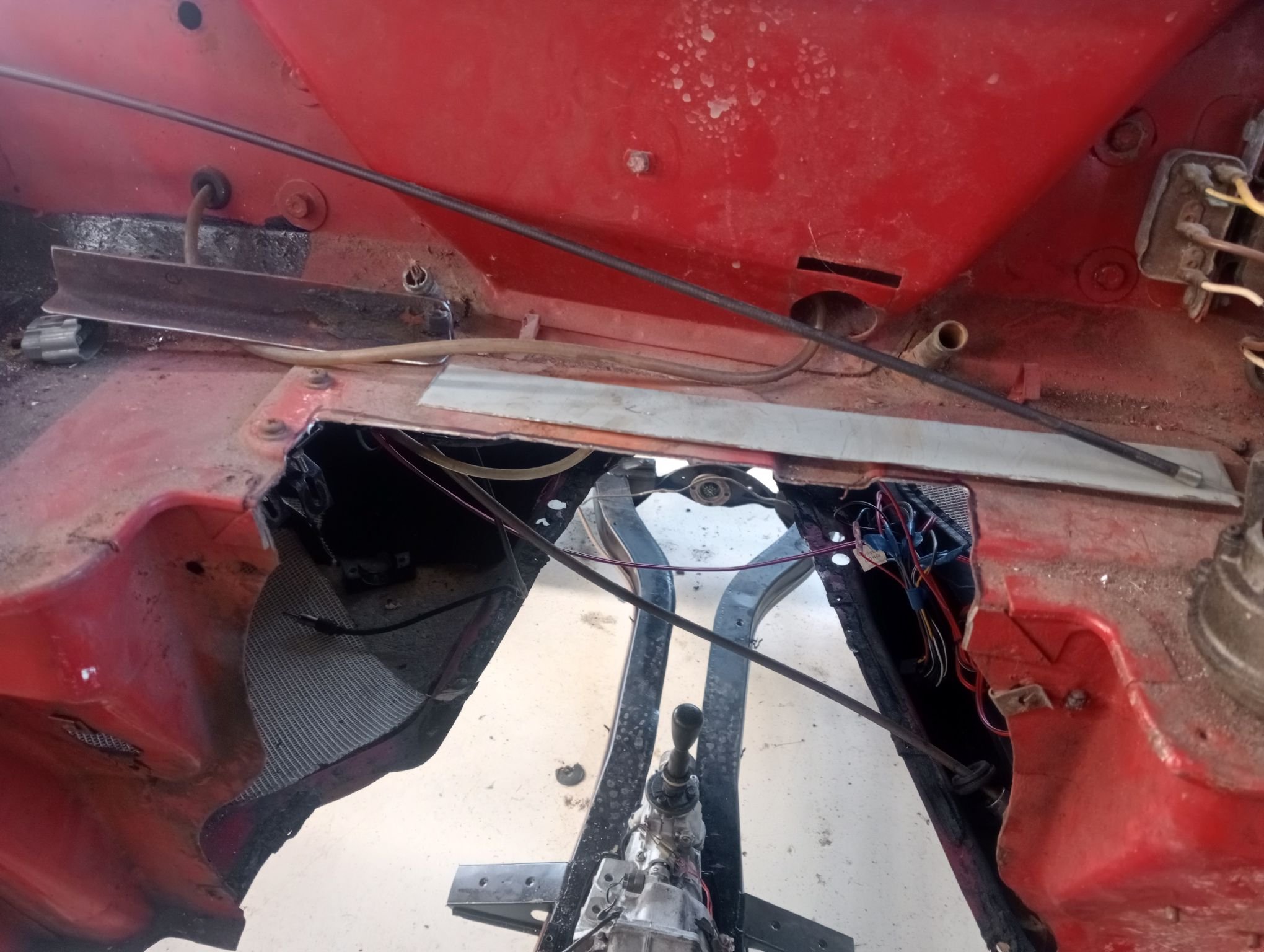 gibbon Posted June 18 Author Posted June 18 transmission fits the tunnel perfectly except the shifter is miles back, probably just about under the handbrake. No wiring was disconnected prior to this photo it was all legitimately just hanging its guts out like that since around 2012 there is a well documented mod to move the shifter forward but it's still not quite enough to get it back to the factory hole in the trans tunnel. the mod places the shifter about two inches aft of the mount points showing which would have it coming just through the wall of the tunnel. I decided I could do better by doing away with the mount points and bringing the shifter as far forward as possible. I wish I had just gone with the original modified point! the mechanism is EXTREMELY sensitive to misaligment and the selector rod will jam up if it is not completely, perfectly straight. right now the whole thing is sitting on a workbench jammed with shims and things-acting-as-shims, waiting for some brave soul to TIG some new mount points onto it. I might get a photo of the finished product, but let's just call it a work in progress with the aircon pulley mounted just over the steering rack and the larger alternator pully sitting just behind, this is the nearest pinch point - the heater (I think?) outlet at the back of the head just sits off from the firewall seam (pic is taken directly down at the rear of the engine). Once I'm assured that this is a heater line and nothing more I'll blank it off and move the temp probe. My heater is long gone 9 Quote