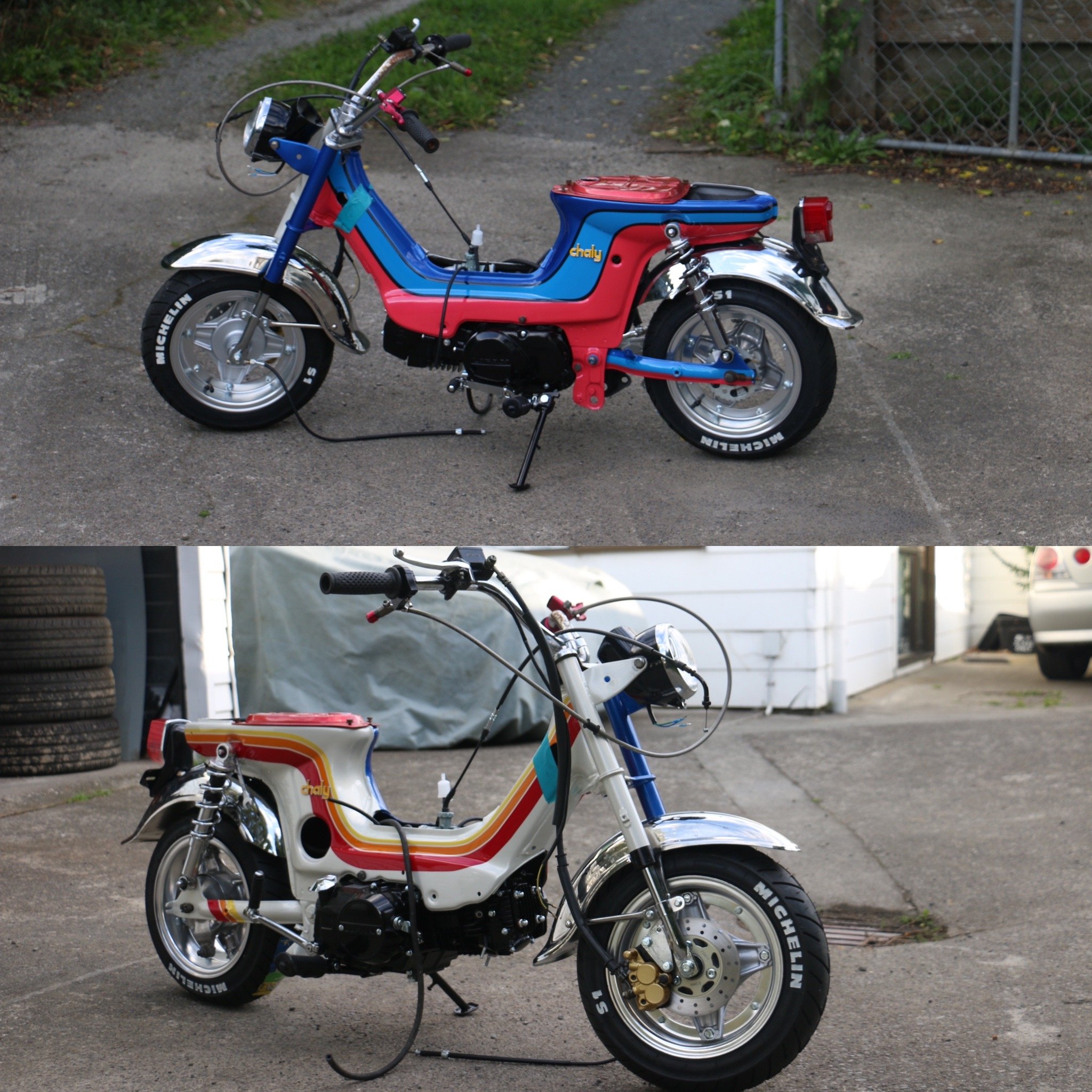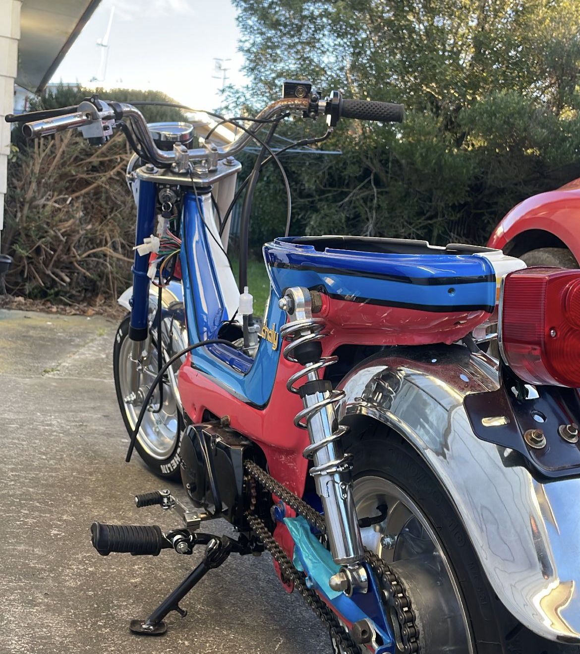 EmmyWest Posted October 12 Posted October 12 Far out my green ass didn't even notice the bike section here. would be rude not to share my project. some will be familiar with the build through my instagram but ill try go into more detail here. Story starts off with my old man getting this off a workmate circa 2005? (along with a couple of other much less interesting scooters) As a kid, I thought it was an ugly piece of crap, and I was right, but I had no idea of the potential of these bikes until almost 2 decades later; until I heard about Syd's Run. When i finally got into this in Oct 2022, I fully realised how hilarious the "'""modifications""" are that the previous owners have done to the bike. Medication pill bottle for the intake, with red RTV. Paint can for the side cover Rubbish bag lookin' seat whatever that rear guard is?? insane. 2 1 Quote